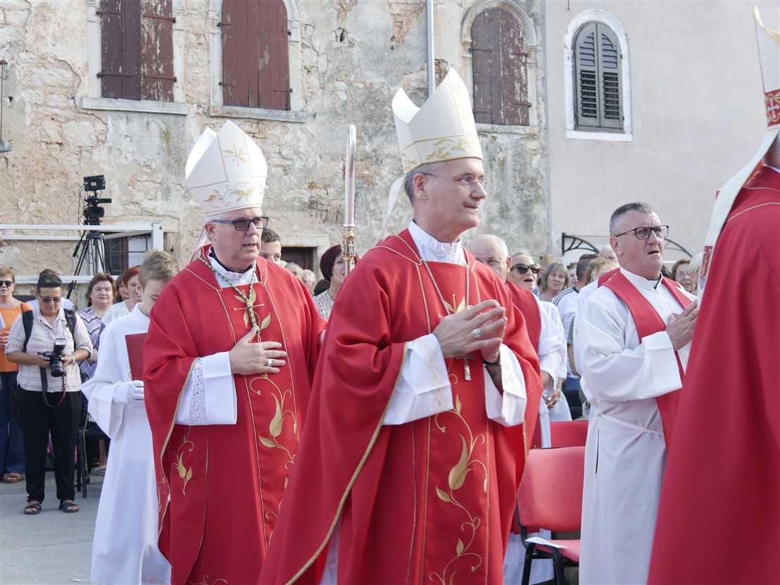„Drago mi je da kao sin ovog podneblja središnje Istre i svećenik kojem je Crkva u Istri mnogo toga darovala, kao prvi nastup u Istri nakon biskupskog ređenja u zadarskoj katedrali sv. Stošije, 25. lipnja 2022., ovom svetom službom, zajedno s vama, Bogu mogu zahvaliti za dar blaženika Miroslava i svim milostima koje nam Gospodin podjeljuje po njegovu zagovoru“, rekao je na početku homilije mons. Zgrablić.