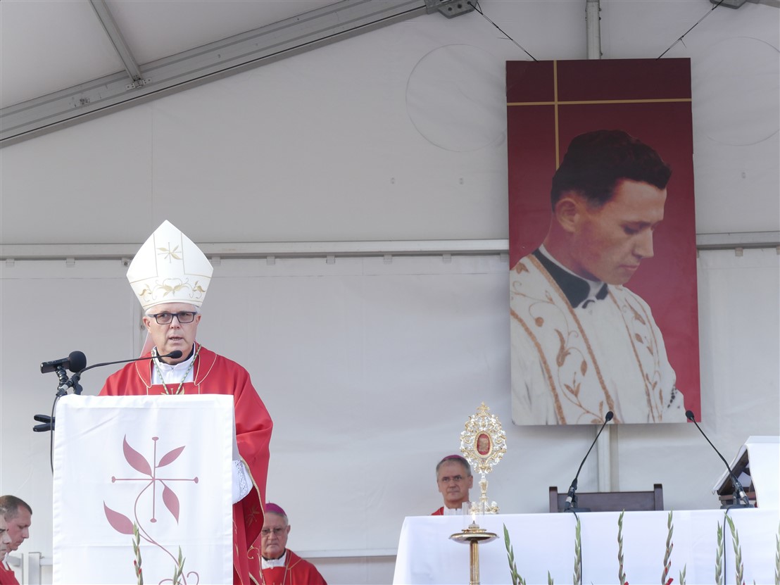 Mons. Zgrablić je citiravši encikliku pape Franje „Fratelli tutti“ podsjetio na upozorenje „Vjernik može biti nevjeran u svemu onom što sama vjera zahtijeva, a opet se može osjećati bliskim Bogu i smatrati se dostojnijim od drugih“. „Blaženi Miroslav vjeru nije ispovijedao samo deklarativno. Nije u Boga pasivno vjerovao nego je s Bogom živio. Vjerovao je njegovoj ljubavi živeći u ljubavi“, naglasio je propovjednik.