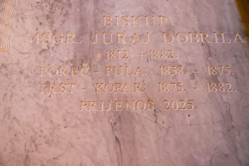 Nakon gotovo 150 godina od njegove smrti, zemni ostaci velikog biskupa, narodnjaka i preporoditelja mons. Jurja Dobrile pokopani su u biskupsku grobnicu u Porečkoj katedrali u subotu 17. siječnja 2026. godine, na svetoj misi koju je predvodio mons. Ivan Štironja, biskup porečki i pulski, nekoliko dana nakon obljetnice njegove smrti (13. siječnja), i dan prije godišnjice njegova ukopa 18. siječnja 1882., na groblju sv. Ane u Trstu.