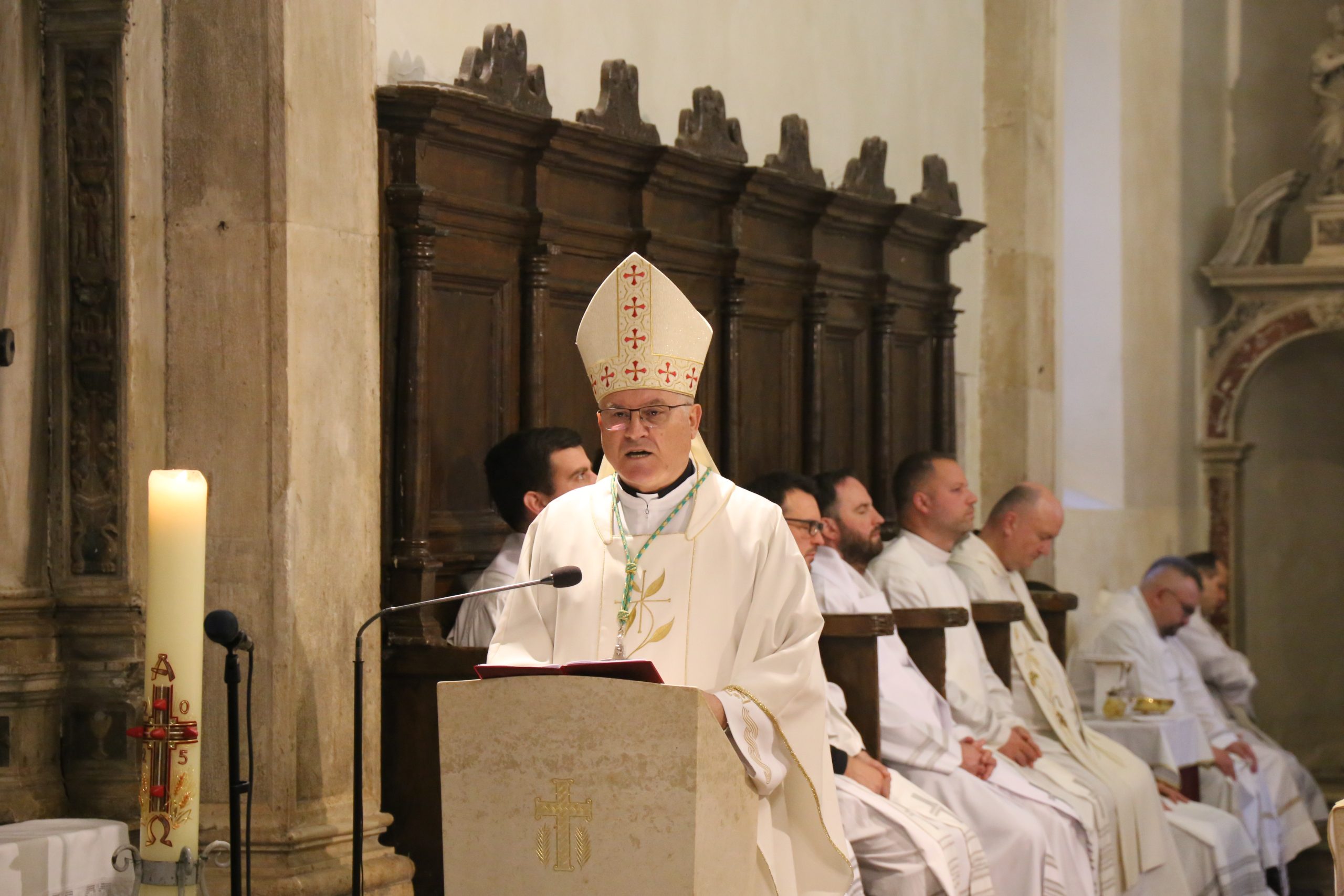 Biskup je u propovijedi nastavio: „Sveti Ivan u svom evanđelju, poziva na razmišljanje o Dobrom Pastiru koji se u potpunosti daruje kako bi oni koji su mu povjereni bili sigurni. Pojam pastira sve više i više gubi svoje značenje. Pastir je onaj koji svojem stadu jamči sigurnost, vodi ga, brine se da ima sve što mu treba, i jamči sigurnu ispašu. U ovoj slici pastira koji čuva i vodi svoje stado prepoznajemo Isusa. Vrlo je važno znati razabrati koga trebamo čuti, čiji savjet trebamo usvojiti, razvijati i pretočiti u život. Konačno, slušanjem potvrđujemo svoju ljubav, poštovanje, vjernost i odanost prema onomu koji nam govori. Stoga, nisu samo djeca ona koja trebaju slušati svoje starije nego svaki čovjek treba naučiti slušati.“