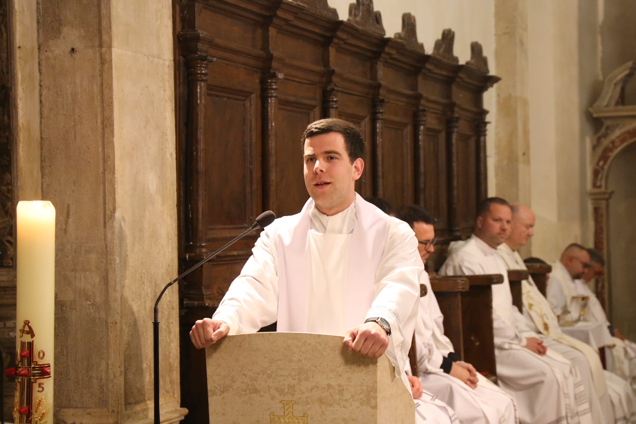 Propovjednik je rekao: „Svi ovdje nazočni svećenici, redovnici, redovnice, kao i vaš biskup, možemo vam posvjedočiti radost i sreću. Svojim svjedočanstvom radosti ne želimo omalovažiti druge pozive, osobito supružnike koji svojim vjernim življenjem sakramenta ženidbe i otvorenosti životu svakodnevno svjedoče i daju nadu našem društvu.“ Govoreći o nadi podsjetio je na riječi pape Franje iz poruke mladima: „Dragi mladi, nada u Boga ne razočarava, jer On vodi svaki korak onih koji se u njega uzdaju. Svijet treba mlade koji su hodočasnici nade, koji hrabro posvećuju svoj život Kristu, puni radosti što su njegovi učenici misionari.“