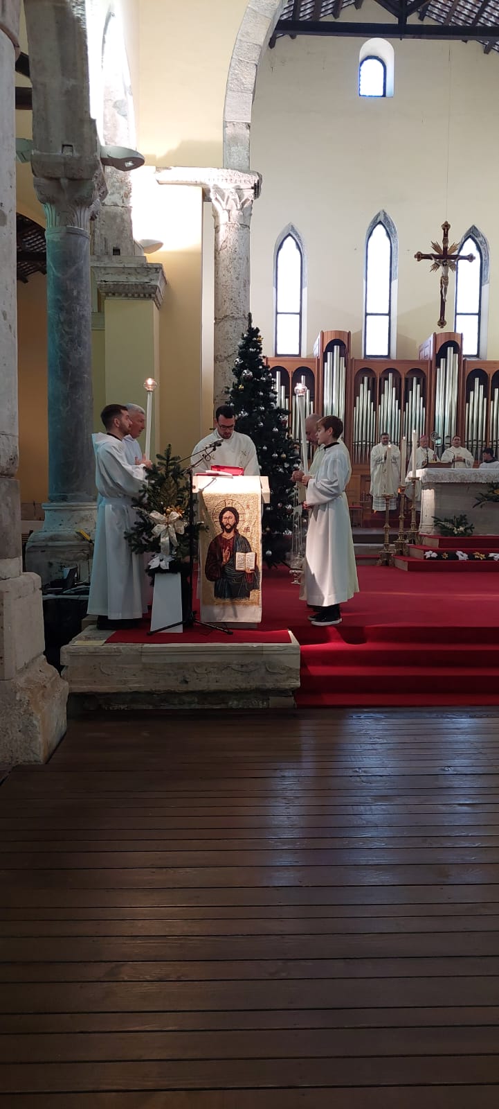 Na svetkovinu Božića, porečki i pulski biskup u miru Ivan Milovan predvodio je svečano misno slavlje u pulskoj katedrali. Koncelebrirao je katedralni župnik vlč. Rikard Lekaj, te vlč. Piergiorgio De Angelis, koordinator neokatekumenskog puta za Hrvatsku i okolne zemlje. Pri oltaru je posluživao nedavno zaređeni đakon Vid Grdadolnik.
