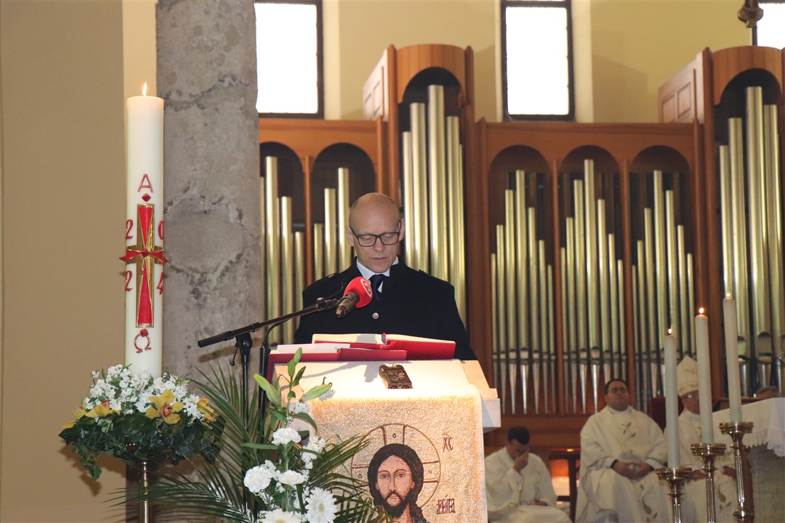 Biskup je u uvodnim pozdravima istaknuo kako je „ovo dan Isusove pobjede nad svim silama zla“. „Uskrs je za sve nas poruka nade koju nam Bog daje i izvor je nove snage u životu. Život nam je često obilježen „situacijama Velikog petka“, ali s Crkvom već dvadeset stoljeća ispovijedamo vjeru u Uskrsnuće Kristovo i naše, s tom vjerom slavimo i ovaj Uskrs.“