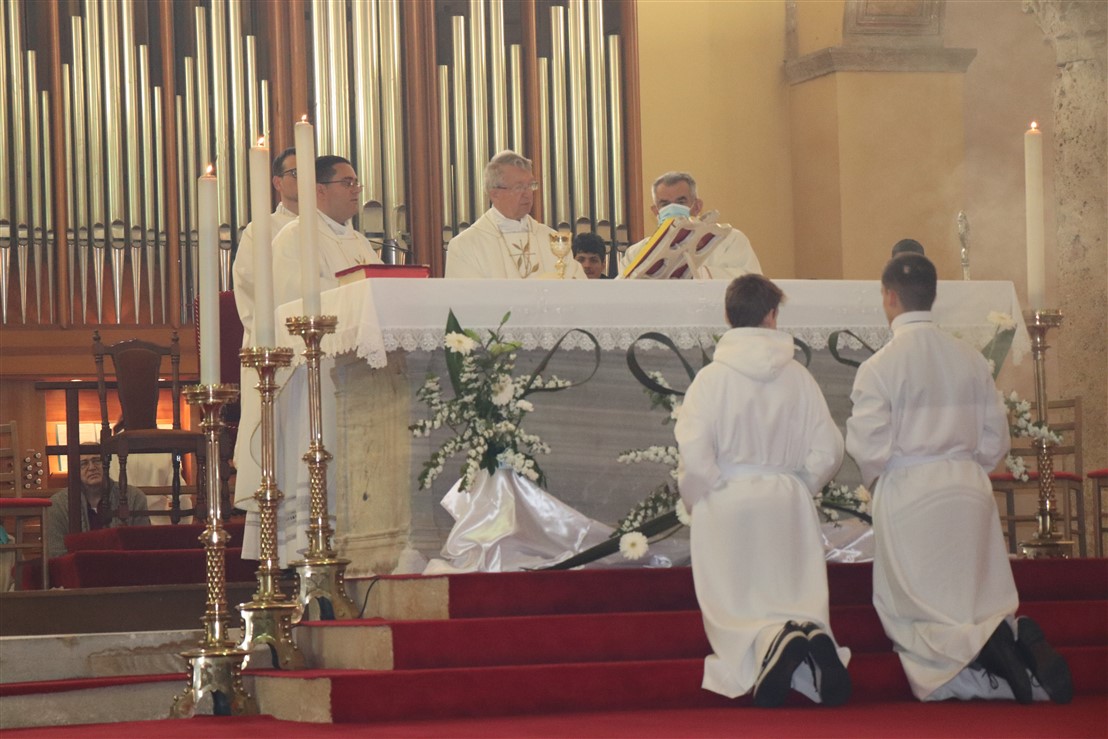 Euharistijsko slavlje na svetkovinu Uskrsa u pulskoj katedrali predvodio je porečki i pulski biskup u miru mons. Ivan Milovan. U koncelebraciji su bili katedralni župnik vlč. Rikard Lekaj te umirovljeni svećenik vlč. Aleksandar Branimir Petrović. Pri oltaru je posluživao đakon Vid Grdadolnik.