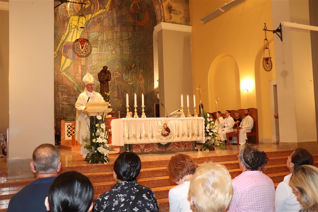 „Braćo i sestre, rado uzimajmo i zahvalno pijmo iz euharistijskoga kaleža spasenja. Za koji trenutak čut ćemo: „Uzmite, jedite…, uzmite, pijte…, ovo činite meni na spomen…“; „evo Jaganjca Božjega, evo onoga koji oduzima grijehe svijeta…, blago onima koji su pozvani na Gozbu Jaganjčevu“. Mi smo ti sretnici kojima je blago. Živimo u toj radosti! Posvjedočimo da razumijemo što nam Bog nudi i govori! Prenesimo taj blagoslov na svoju mladež na djecu!“, pozvao je biskup.