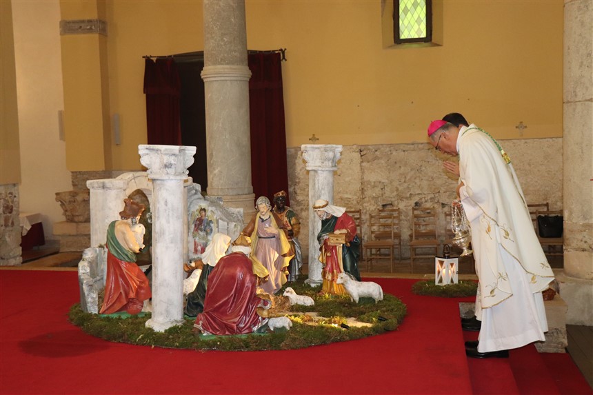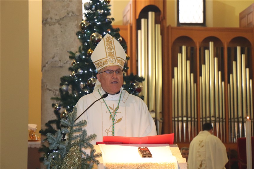 Božić koji se obilježava već stoljećima ušao je u tradiciju, susreće ga se ne samo u duhovnim nego i kulturnim manifestacijama, kao nešto plemenito, lijepo i znakovito; susreće ga se pod raznim vidovima umjetnosti i folklora ali je proslava Božića ponajprije vjerski blagdan, utemeljen na otajstvu Božjega utjelovljenja i dolaska među nas ljude, rekao je biskup Ivan te podsjetio da se Isus rodio u Betlehemu, malom mjestu nedaleko od Jeruzalema. Mjesta u kojima živimo, ne moraju biti velika i značajna, ali su važna po crkvama u kojima na poseban način živi Isus po sakramentu Euharistije, rekao je propovjednik te pozvao prisutne da se u svijet i društvo ugrade svojim srcima: „Da u svijet stavimo svoje oči kako bismo vidjeli gdje Bog trpi i pati u svijetu; da njegovim ušima čujemo što to ljudi žele, što traže, što im manjka, od čega boluju. Tako ćemo prepoznati bolesti društva i tako ćemo ozdraviti kao društvo“.