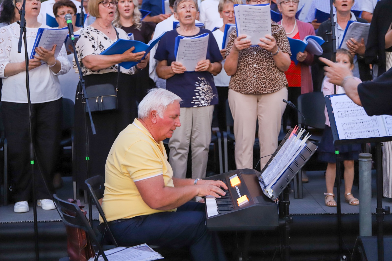 Liturgijsko pjevanje za vrijeme misnog slavlja i procesije animirali su pjevači župnih zborova koje je okupio, uvježbao i profesionalno vodio vlč. Rudi Koraca, župnik Karojbe i Motovunskih Novaka, a na orguljama ih je pratio Bruno Gortan iz Župe sv. Jurja u Starom Pazinu. Nakon misnog slavlja, biskup Štironja im je čestitao na skladnu i ugodnu pjevanju, zahvalio što su pomno izabrali liturgijske pučke pjesme kako bi u pjevanju sudjelovao što veći broj vjernika, te ih potaknuo da i ubuduće animiraju liturgijsko pjevanje na ovakvim i sličnim biskupijskim slavljima.