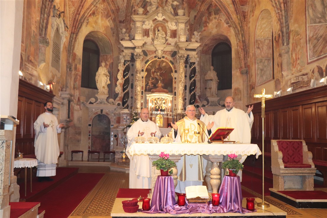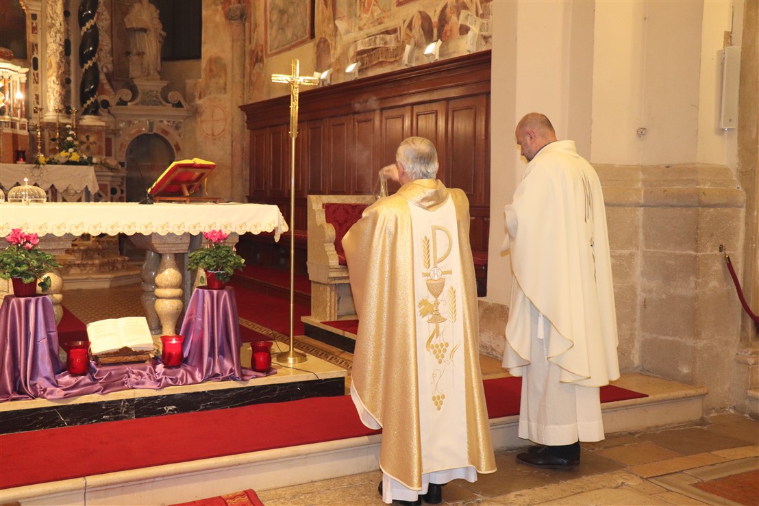 Pazinska Župa sv. Nikole biskupa svoju je župnu svetkovinu proslavila svečanim koncelebriranim misnim slavljem koje je ove godine predvodio zlatomisnik vlč. Jordan Rovis, župnik Žminja, a koji je upravo u toj pazinskoj crkvi zaređen za svećenika pred pet desetljeća. Na početku je prigodnu riječ dobrodošlice okupljenima uputio župnik domaćin, preč. Mladen Matika, pazinski dekan. On je uz ostalo pozdrav uputio i č. s. Augusti Modrušan, milosrdnici koja je desetak godina provela na službi u Pazinu a sada je već dugi niz godina u Žminju.