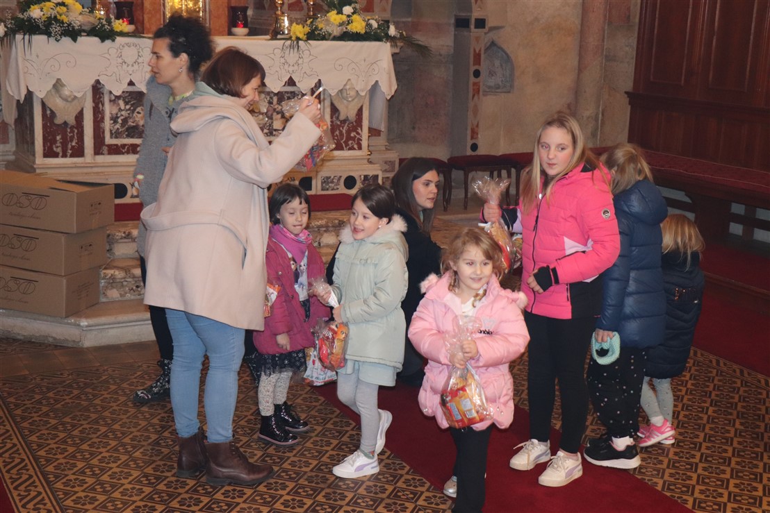 Misu su glazbeno animirali odrasli pjevači iz župnoga zbora te mališani iz dječjeg zbora. Na kraju mise, nakon završnih zahvala župnika, vlč. Rovis je pročitao blagoslovnu molitvu i udijelio Božji blagoslov svoj okupljenoj djeci, a potom su mališani iz dječjega zbora nastupili s još dvije pjesme, otpjevavši ih ispred oltara. Nakon svega su djeci podijeljeni prigodni poklon paketi.
