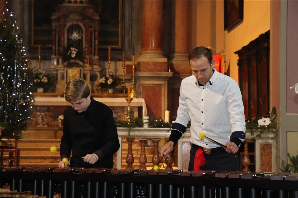 Gotovo na pola programa uslijedio je poetski intermezzo barda istarske kulturne scene, književnika, publicista i glazbenika Daniela Načinovića, Labinjana s pulskom adresom, je prigodno izrekao svoje stihove na labinskom govoru „Kovarski (rudarski) Božić“ i na talijanskom jeziku „Božićna noć – La notte del Signore“ . Nakon Načinovića puhački duet flauti Ria Gobo i Sara Bernaz izvele su instrumentalno splet božićnih pjesama. Slijedeću, udaraljkašku točku na marimbi iz orkestralne suite „Badinere“, sedmi stavak, izveli su Filippo Kranjac i Marijan Lincmajer. Pučku pjesmu iz Gradišća „Djetešce nam se rodilo“ odsvirale su u duetu mlade Mia Gergorić na klaviru i Ria Gobo na flauti. „Neka cijeli ovaj svijet“, poznatu ariju iz mjuzikla „Jalta, Jalta“ otpjevao je Filip Špionjak uz pratnju na marimbi Majrijana Lincmajera. Pučki napjev iz Vodica „Vesel’mo se ov’ čas“ otpjevao je Zbor Župe Gospe Fatimske iz Donjeg Labina.