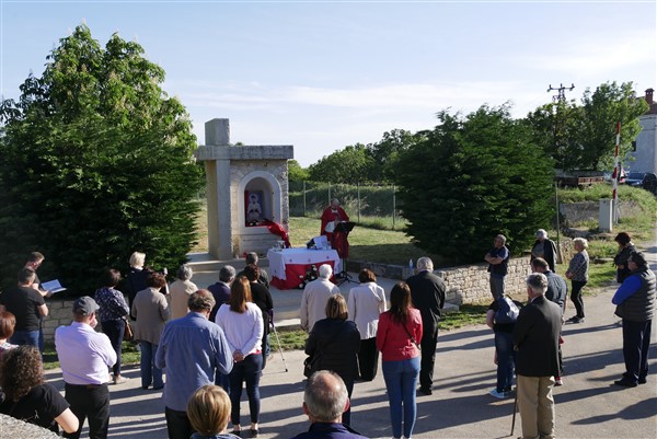 Župnik je u uvodnom pozdravu podsjetio da se na tom trgu, nedaleko rodne kuće blaženika, misa održava još od prije izgradnje kapelice, kada je tek postojao projekt njezine realizacije.