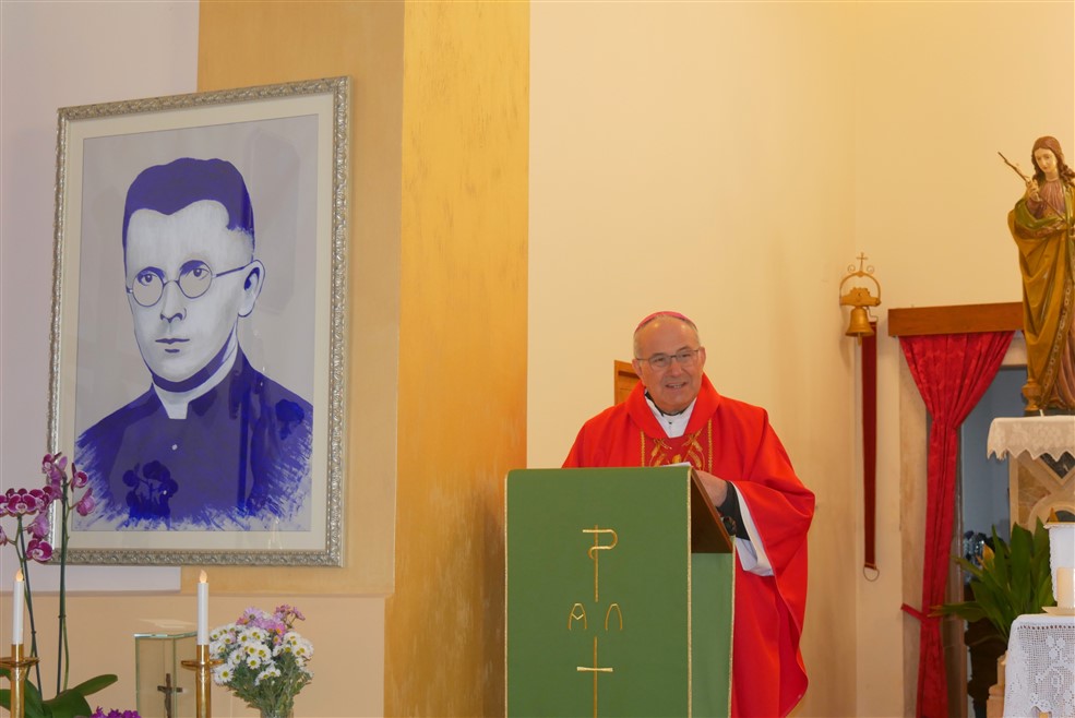Biskup je u prigodnoj homiliji, govoreći o bl. Bonifaciu, istaknuo kako je naslov nedavno održanog oratorija njemu u čast, „Requiem e Gloria“, iako na prvi pogled izražava kontradikciju, odraz kršćanskog pogleda na prijelaz, koji nije kao u ljudskom shvaćanju iz života u smrt, već je u vjerničkoj perspektivi to prijelaz iz smrti u Život. Istaknuo je nadalje, u perspektivi utjelovljenja Riječi, važnost mjesta, stoga je važno hodočastiti i upoznati mjesta gdje je živio bl. Bonifacio, kojeg nam Crkva stavlja kao uzor, rekao je nadbiskup. U nastavku homilije rekao je kako u svojoj sobi, uz raspelo i sliku Majke Božje ima i sliku bl. Bonifacia, kojemu se utječe za pomoć u vođenju mjesne Crkve koja mu je povjerena, njegovu zagovoru povjerava svoju biskupiju, sve svoje svećenike i suradnike laike, te ga moli za pomoć kako bi njegova biskupska služba bila plodonosna i blagoslovljena kakvo je bilo i djelovanje tog Božjeg ugodnika.