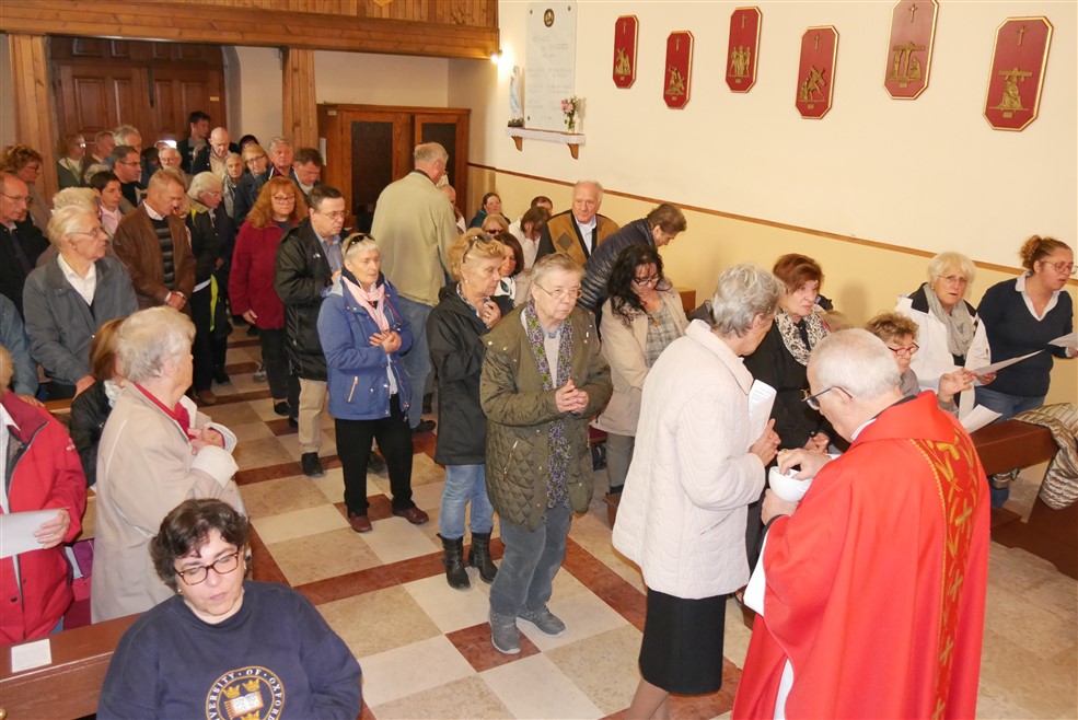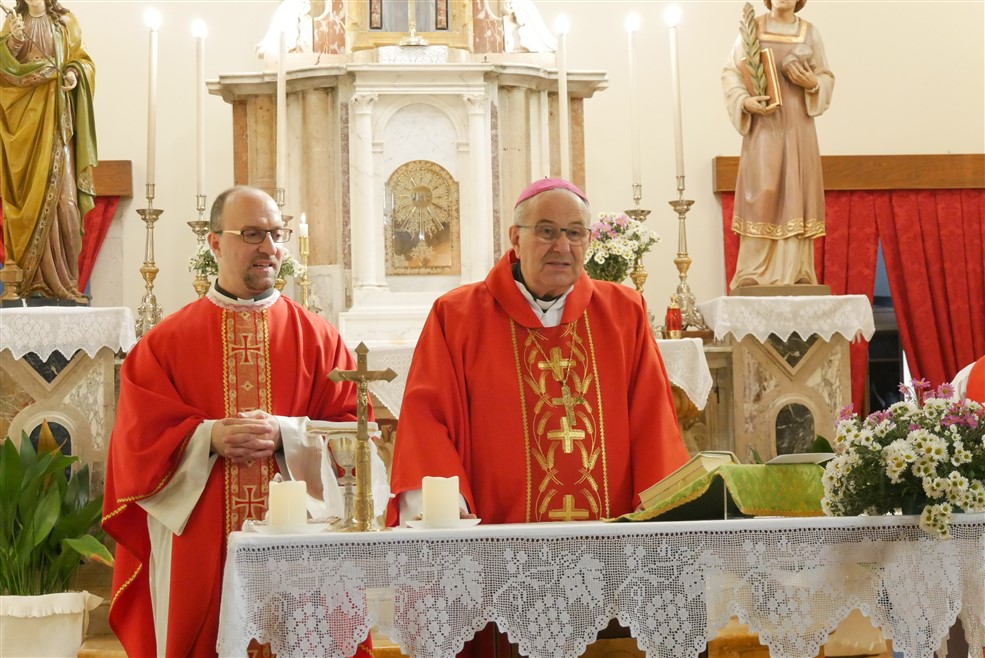 Po dolasku u Krasicu, u župnoj crkvi sv. Stjepana nadbiskup je predvodio misno slavlje, a koncelebrirali su don Simone Agrini, župnik tršćanske Župe sv. Augustina koji je ujedno i predstojnik dijecezanskog Ureda za hodočašća, sport i slobodno vrijeme, biskupov tajnik don Mario Varga i don Domenico De Filippi, kapelan u Župi sv. Servula i bolnički kapelan u Dječjoj bolnici Burlo Garofolo.