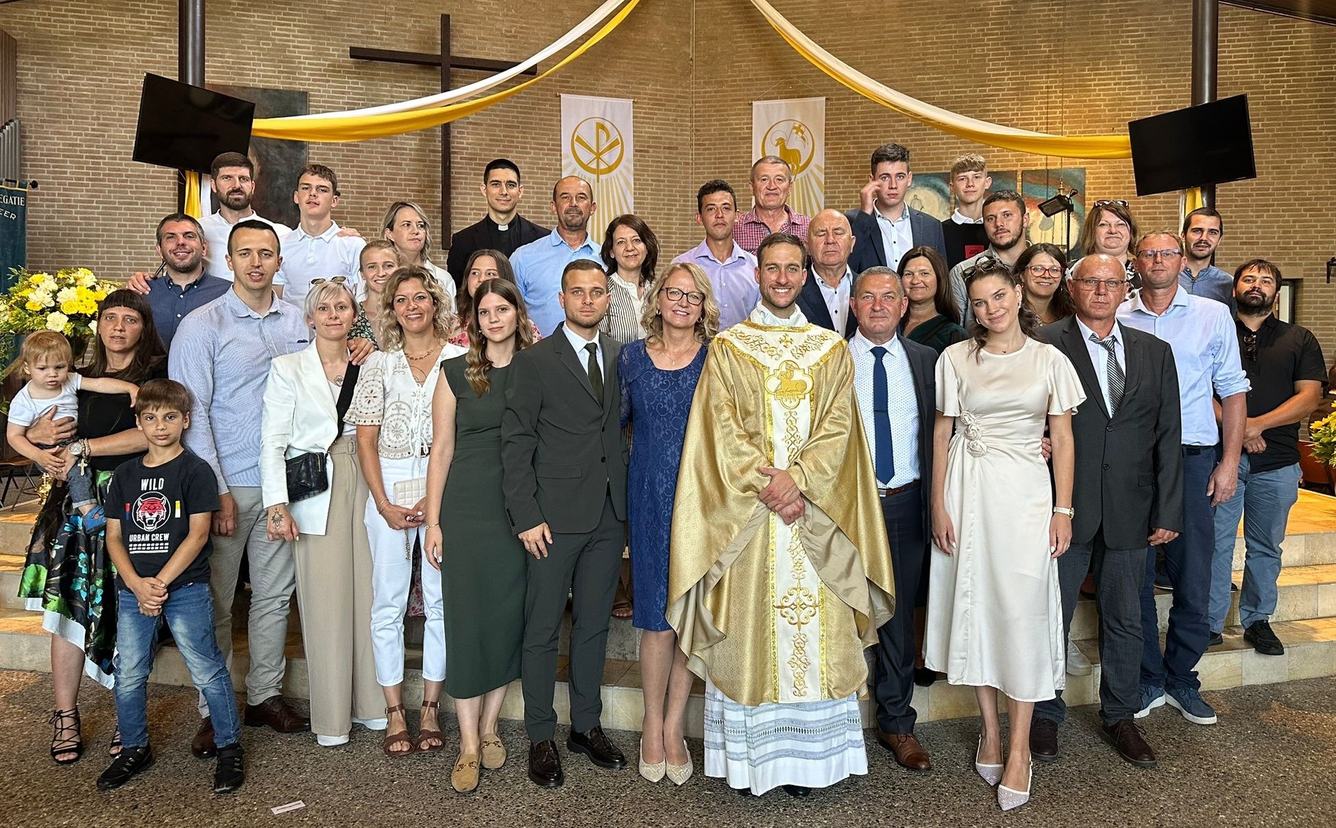 Na misnom slavlju, u prepunoj katedrali, uz obitelj ređenika, sudjelovalo je 40-ak gostiju iz Hrvatske zajedno s nekoliko svećenika iz Porečke i Pulske biskupije, gosti iz Švicarske, župljani te braća i sestre iz neokatekumenskih zajednica iz Nizozemske.