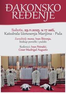 U subotu 29. studenoga 2025. dva dijecezanska kandidata, Cesar Augusto Madrigal Guavito i Ivan Petrašić, primit će red đakonata po rukama porečkog i pulskog biskupa mons. Ivana Štironje.