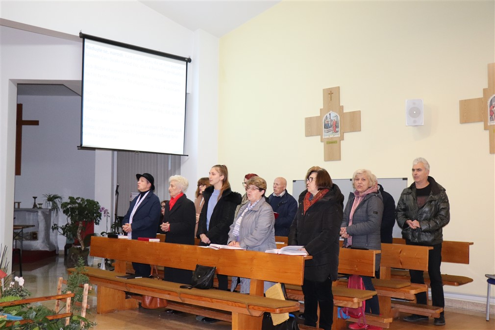 Nakon izlaganja susret je nastavljen u župnim prostorijama ispod crkve uz prigodno čašćenje.