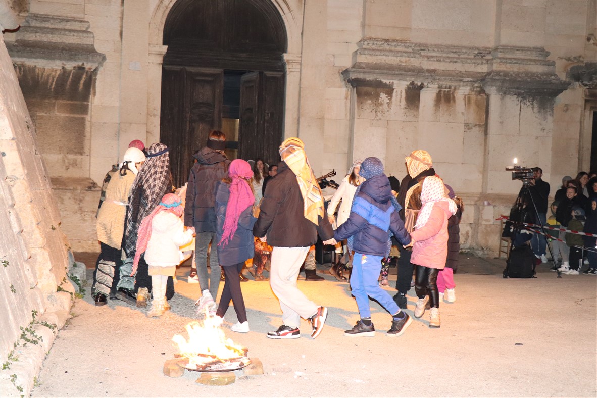 Program je započeo ispred ulaza u katedralu, podno zvonika, gdje su mali i veliki glumci oživjeli prizore anđelovog naviještenja, Josipovog sna, susreta Elizabete i Marije, dolaska Marije i Josipa u Betlehem i druge. Posebno su atraktivni bili mali i najmlađi koji su, s adekvatnim odjevnim dodatcima, glumili pastire.