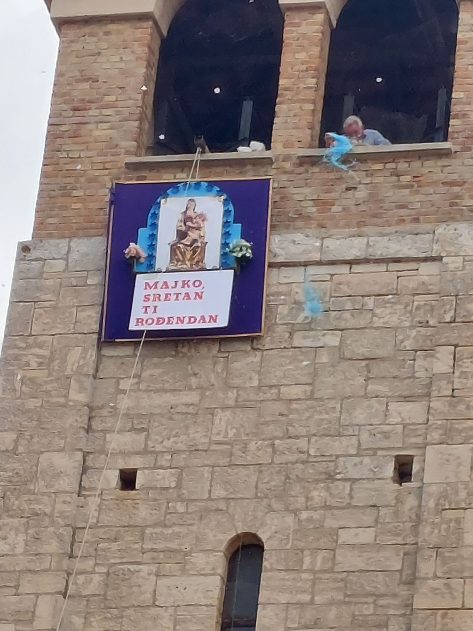 Na kraju mise u dvorištu crkvenog imanja iza crkve, održan je glazbeno scenski trenutak, rođendanska čestitka Majci Božjoj, uz glazbenu je podlogu, podignuta do vrha zvonika.