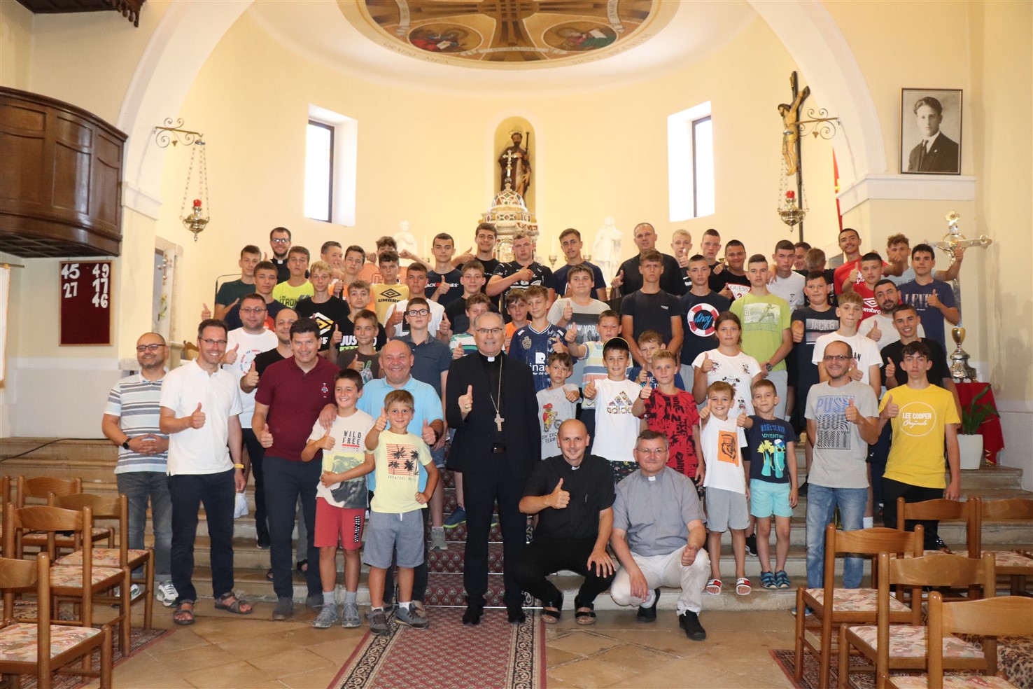 Posvijestio im je i važnost timskog rada pod vodstvom najvećeg izbornika, Isusa Krista. Taj timski rad se vježba u Crkvi i uči od Crkve koja je i tim i ekipa, koja ima igrače, trenere i izbornike, nadasve izbornika u osobi Isusa Krista, „Izbornika svih izbornika“. Potom je dodao: „Pozivam vas da nastojite kroz život rasti u zajedništvu, da znadete timski djelovati i raditi. Ako ćete biti egoisti, nećete ništa postići, jer sebičan igrač rijetko postiže dobre ciljeve. Moramo biti oni koji će znati dodati drugima, biti u službi drugih, poput ministranata – poslužitelja kod oltara. To je Crkva, to je poziv i ideal: slijediti Isusa koji sve daje za druge. Zato ga možemo slaviti kao Onoga koji je vrhunac svih izbornika, svih natjecanja i sportova; nasljedovati Isusa koji uvijek igra „fer play“, pa taman to, ponekad, bilo i na vlastitu štetu. Razmislite i ponesite barem koju riječ od ovoga susreta u svoj život, a posebno ponesite iskustvo zajedništva koje ste ovdje doživjeti“ rekao je na kraju homilije biskup Štironja.