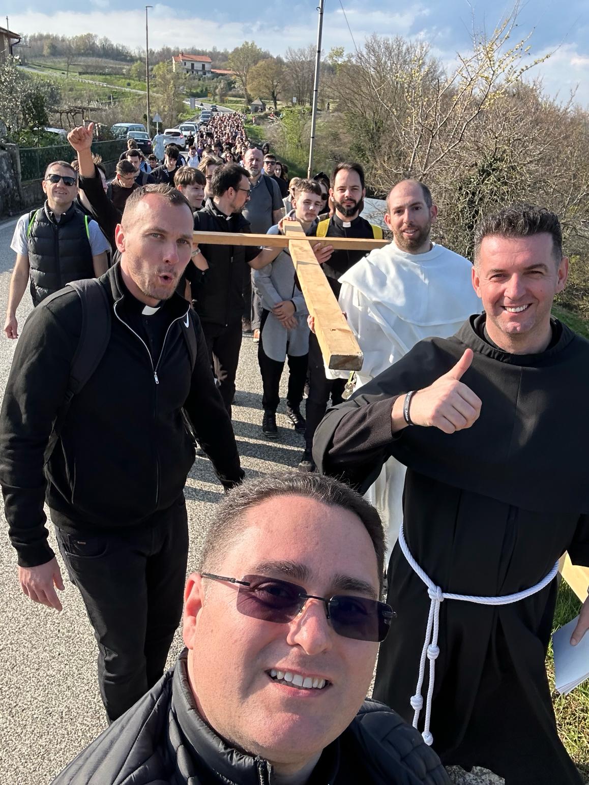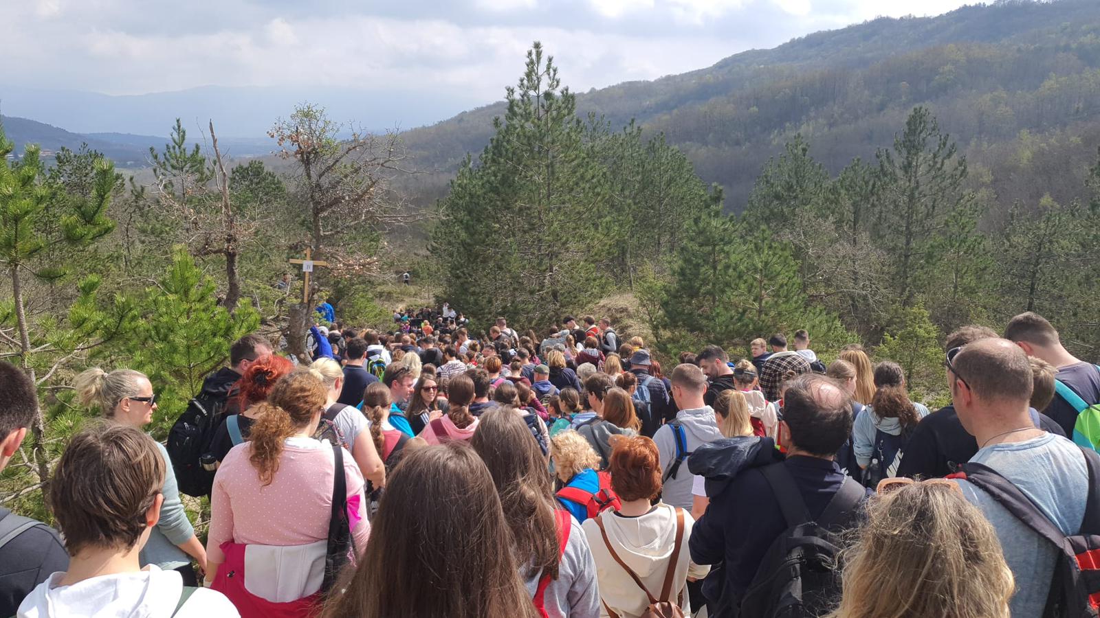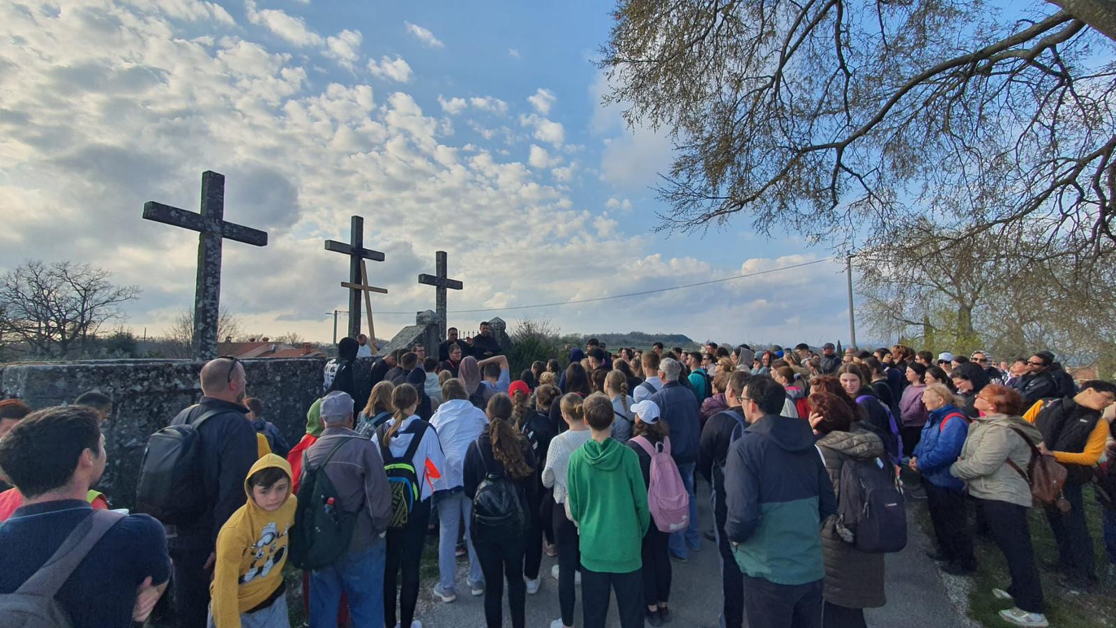 Okupljeni su se potom uputili prema prvoj postaji na Stazi sv. Šimuna. Uslijedila je uvodna molitva pobožnosti križnog puta koju je spontano vodio fra Stjepan. Uz svaku postaju izrekao je kraće razmatranje kojim je ohrabrio i potaknuo mlade da svojim životom slijede Isusa.