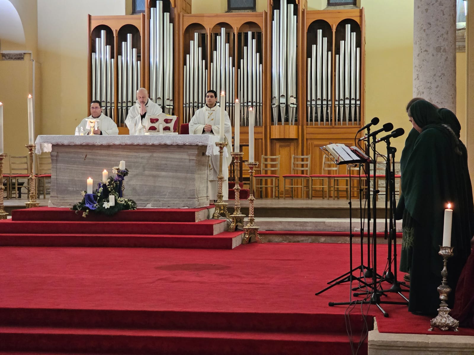 Iz tradicije otaca franjevaca, koji predstavljaju Rimokatoličku crkvu na Svetom grobu i nastavljaju koristiti gregorijansko pjevanje, izveli su antifonu „O Emanuele, spase blag, Zakonošo i kralju naš, ti nado sviju naroda što milostiv ih izbavljaš: dođi spasi nas, o dodi, dodi sa neba Gospodine i Bože naš, da spasenje nam vječno daš!.” „Glazbeno hodočašće“ vodilo je dalje slušatelje od Jeruzalema do Betlehema. Svakog 24. prosinca održava se svečana procesija u kojoj patrijarh nosi lik Djeteta Isusa i stavlja ga na srebrnu zvijezdu koja označava samo mjesto gdje je naš Gospodin došao na svijet. Tijekom procesije palestinski zbor pjeva ovaj tropar na arapskom: ,,Tvojim rođenjem, Kriste Bože naš, zasjala je svjetlost spoznaje u svijetu. Po njemu su štovatelji zvijezda došli da ti se poklone, o Sunce pravde.” Usliedio je koloplet božićnih pjesama: iz meksičke tradicije „La Virgen Lavaba“ iz meksičke tradicije, na Nahuatlanskom jeziku na kojem su pričali Asteci. Pjesma je to koja odražava jednostavnost domorodačke duše. S afričkog kontinenta izveli su kongoansku pjesmu „Noel gloria“ Naredno pjesmom odali su čast Ukrajini marijanskom pjesmom iz ukrajinske tradicije „V Temnuyu Nichku“.