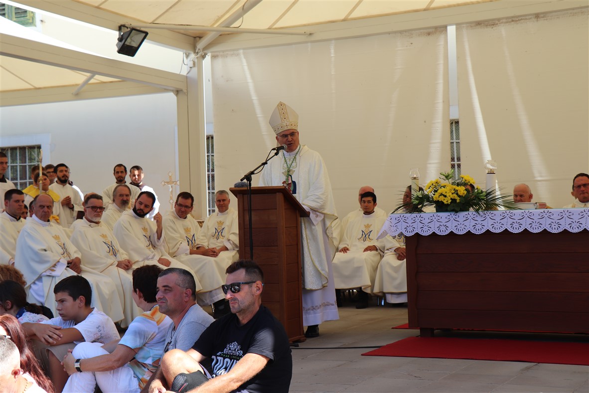 „Hrliti Majci drevni je običaj naših djedova i pradjedova, baka i prabaka“, podsjetio je biskup, prethodno citiravši poznatu marijansku pjesmu. „Naši su se pređi rado utjecali Gospi. S ljubavlju joj i žarom hodočastili, utjecali, nerijetko i zavjetne crkve podizali. Nadahnjivali su se njezinom vjerom i predanjem volji Božjoj. Divili su se čistoći njezina srca i ljepoti duše. Djevojke i mladići, djeca i mladež, zagledani u njezinu nevinost, nadahnjivali su se njezinim krjepostima i nasljedovali je u čistoći i čednosti. Dok u ovoj godini mi u Istri molimo za nova svećenička i redovnička zvanja, molimo ponajprije za naše obitelji da budu otvorene životu, da žive krjeposna i čista srca“, potaknuo je biskup okupljene, te nastavio „molimo da po uzoru na svoje pretke gajimo sveti žar i ljubav prema Majci koja nas nikad ne ostavlja. Sačuvati pradjedovske vrijednosti kršćanske vjere utemeljene na evanđelju, i sve to predati budućim generacijama sveta je dužnost svakoga oca i majke, muža i žene, svakoga kršćanina.“ Izrazio je radost zbog prisutnosti djece i mladih, „jer ste tu da primite taj poklad vjere, da s tim pokladom vi živite, rastete i prenesete ga na buduća pokoljenja“.