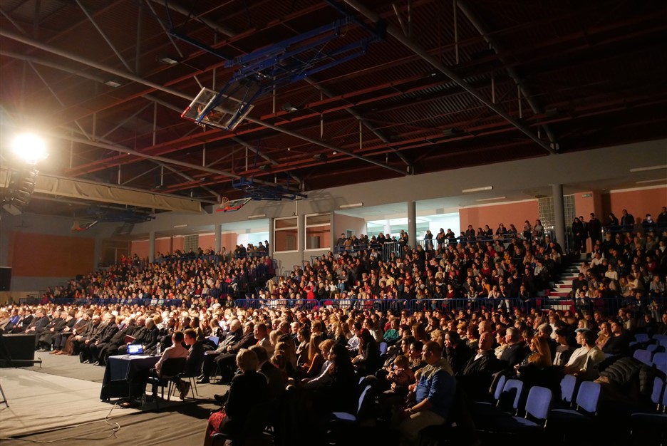 Nakon uručenja čeka, sportskom dvoranom Pazinskog kolegija razlio se glas na koji su se mnogima od okupljenih djelatnika i bivših učenika Kolegija zasuzile oči, reproduciran je kratki ulomak obraćanja mons. Antuna Heka sa otvorenja Pazinskog kolegija: „Danas smo mi ovdje svjedoci pokušaja da ovo zdanje bude simbol novog prepoznavanja povijesnog trenutka i potreba.