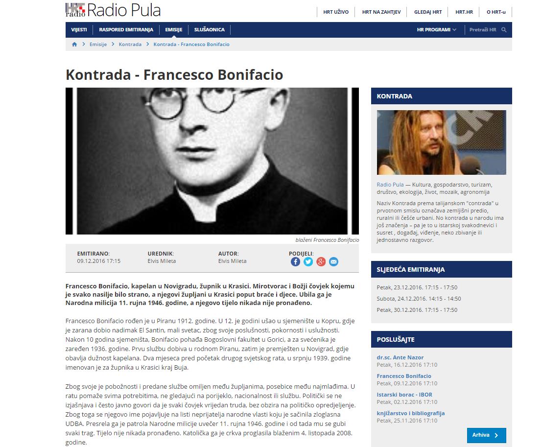O don Francescu Bonifaciju razgovaram sa fažanskim župnikom, vlč. Ilijom Jakovljevićem, koji je o ovom istarskom mučeniku i blaženiku napisao vrijednu knjigu.