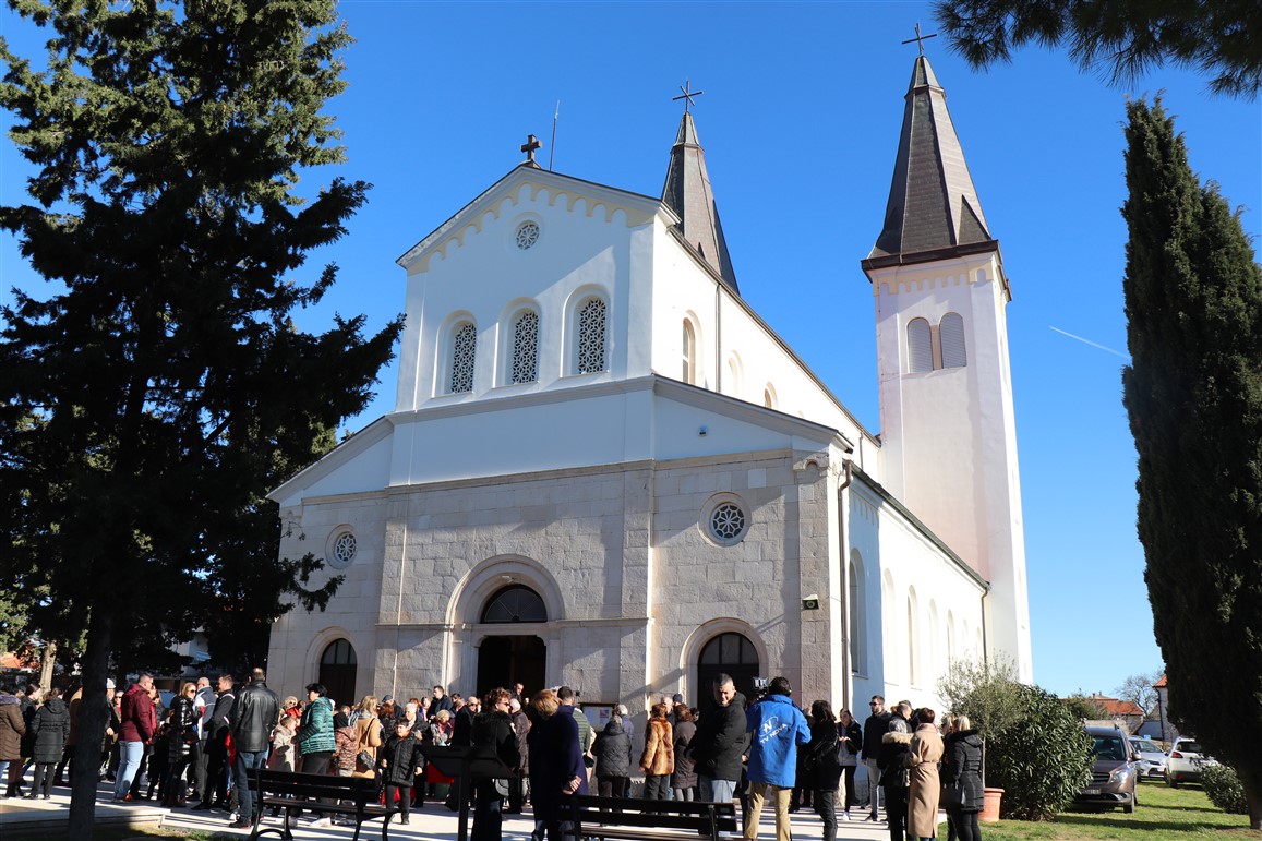 U uvodnim pozdravima župnik je osim predslavitelja i okupljenog puka posebno pozdravio i predstavnike civilnih vlasti, načelnika Općine Medulin Ivana Kirca te predsjednika Turističke zajednice Mihaela Idžakovića.