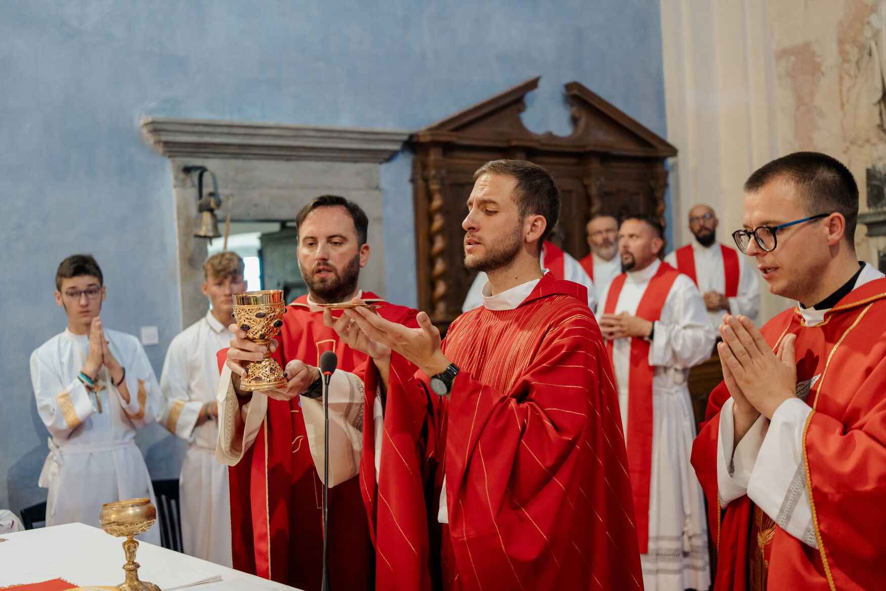 Obred ljubljenja ruku. Na kraju su svi okupljeni primili mladomisnički blagoslov te je uslijedio drevni kršćanski obred ljubljenja mladomisničkih ruku, kojega je vlč. Boško kratko protumačio kao „ljubljenje Isusa Krista koji će po tim mladomisničkim rukama dijeliti svoje sakramente.“