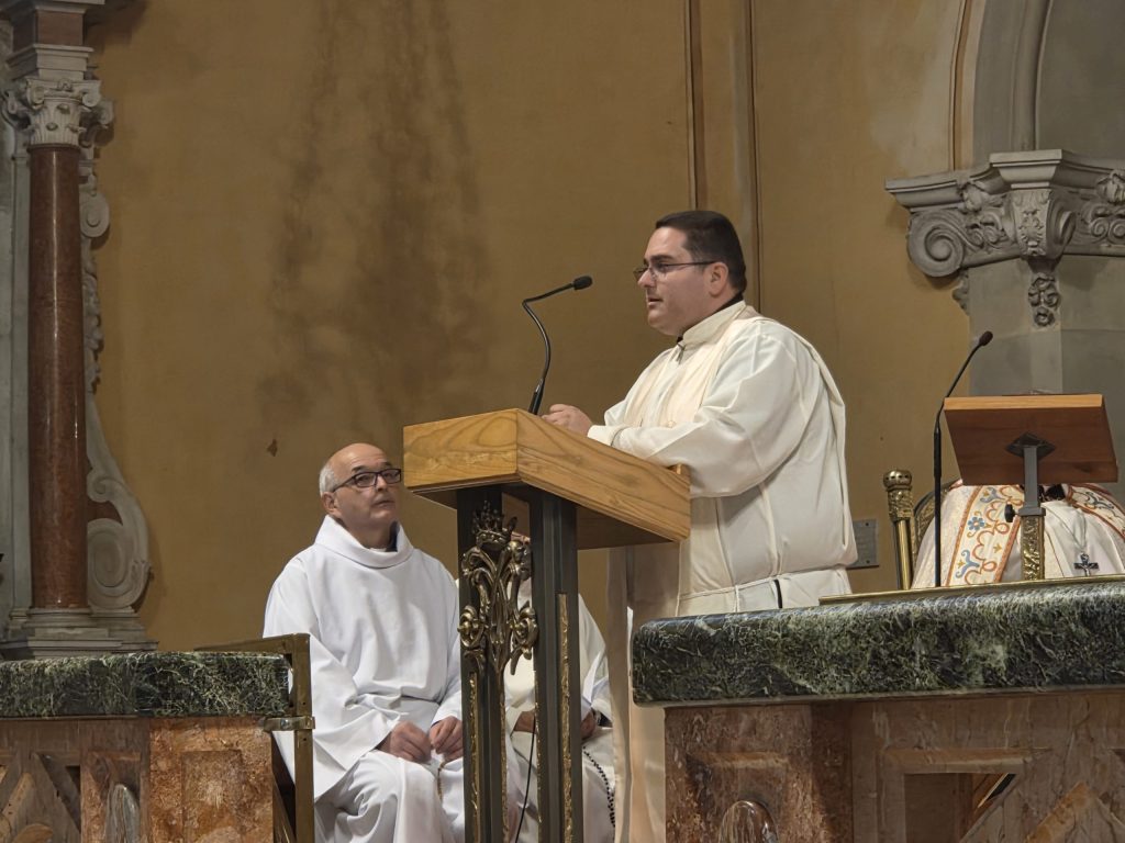 U uvodnom obraćanju koparski biskup mons. Peter Štrumpf je zahvalio braći franjevcima na gostoprimstvu u prekrasnoj crkvi te pozdravio nazočne: mons. Carla Roberta Mariu Redaelli, nadbiskupa Gorice, mons. Enrica Trevisi, tršćanskog biskupa te preč. Rikarda Lekaja, generalnog vikara Porečke i Pulske biskupije. Biskup Peter izrazio je zadovoljstvo što ovim okupljanjem kao jedna obitelj, odgovaramo pozivu pape Lava XIV. da u listopadu molimo krunicu za mir. „Okupljeni u molitvi pred Marijom, svaki od nas na svom jeziku, izrazimo ljubav prema Bogu i u molitvi Mariji, Majci svih naroda jezika i kultura, molimo za mir u svijetu“, potaknuo je biskup.