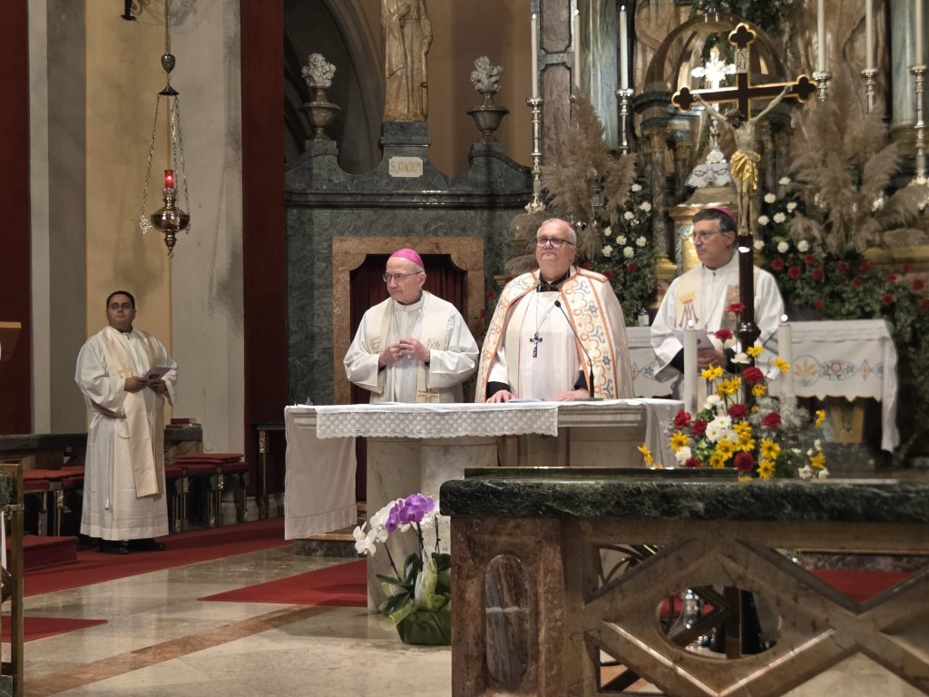 U uvodnom obraćanju koparski biskup mons. Peter Štrumpf je zahvalio braći franjevcima na gostoprimstvu u prekrasnoj crkvi te pozdravio nazočne: mons. Carla Roberta Mariu Redaelli, nadbiskupa Gorice, mons. Enrica Trevisi, tršćanskog biskupa te preč. Rikarda Lekaja, generalnog vikara Porečke i Pulske biskupije. Biskup Peter izrazio je zadovoljstvo što ovim okupljanjem kao jedna obitelj, odgovaramo pozivu pape Lava XIV. da u listopadu molimo krunicu za mir. „Okupljeni u molitvi pred Marijom, svaki od nas na svom jeziku, izrazimo ljubav prema Bogu i u molitvi Mariji, Majci svih naroda jezika i kultura, molimo za mir u svijetu“, potaknuo je biskup.