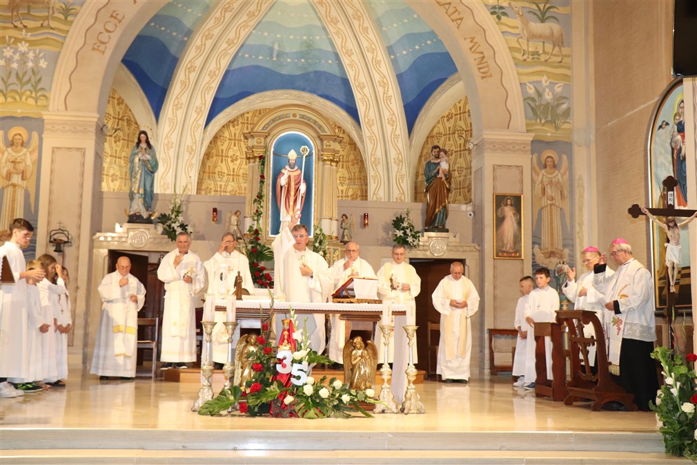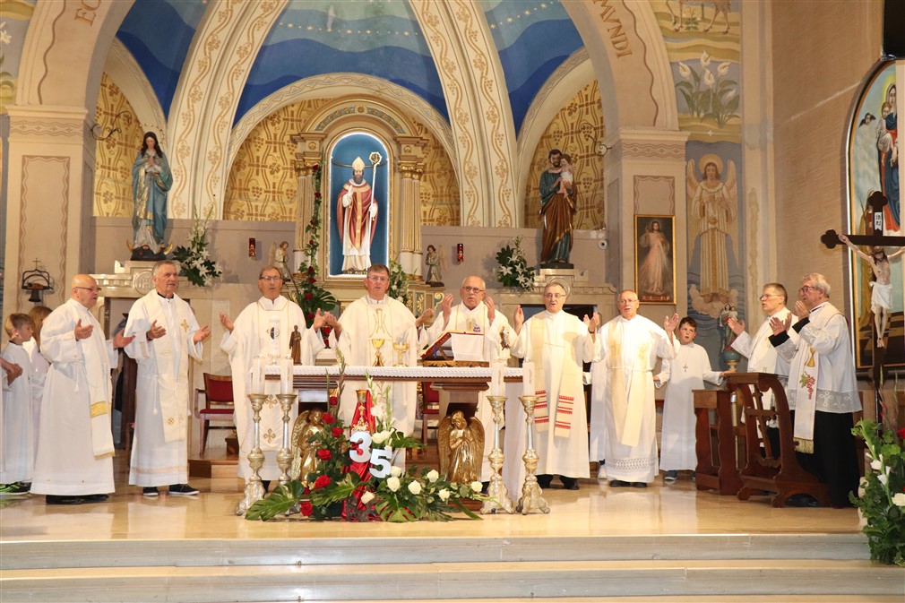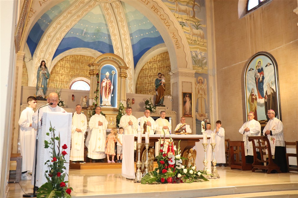 Slavljenik je u svom završnom obraćanju, uz uobičajene zahvale, izrekao čestitku biskupu Milovanu za 60. obljetnicu svećeništva koju će proslaviti 6. srpnja u Svetvinčentu, te preč. Željku Zecu za zlatni jubilej kojeg će proslaviti 1. rujna u Žminju. (G. Krizman)