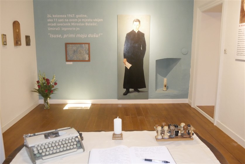 Tadašnja prostorija župnog ureda, mjesto mučeništva, gdje je na zidu nalazi uokvireni ulomak tadašnje žbuke s blaženikovom krvlju, uređeno je preostalim originalnim namještajem i drugim predmetima koji su se tada ondje nalazili.