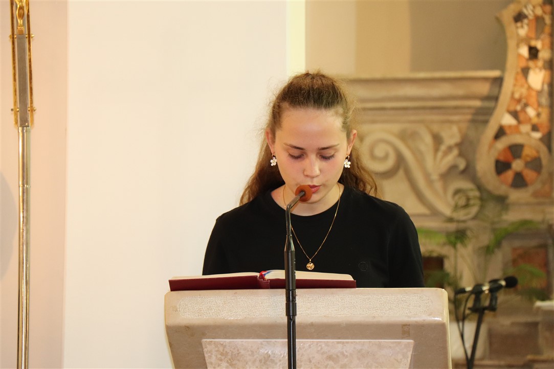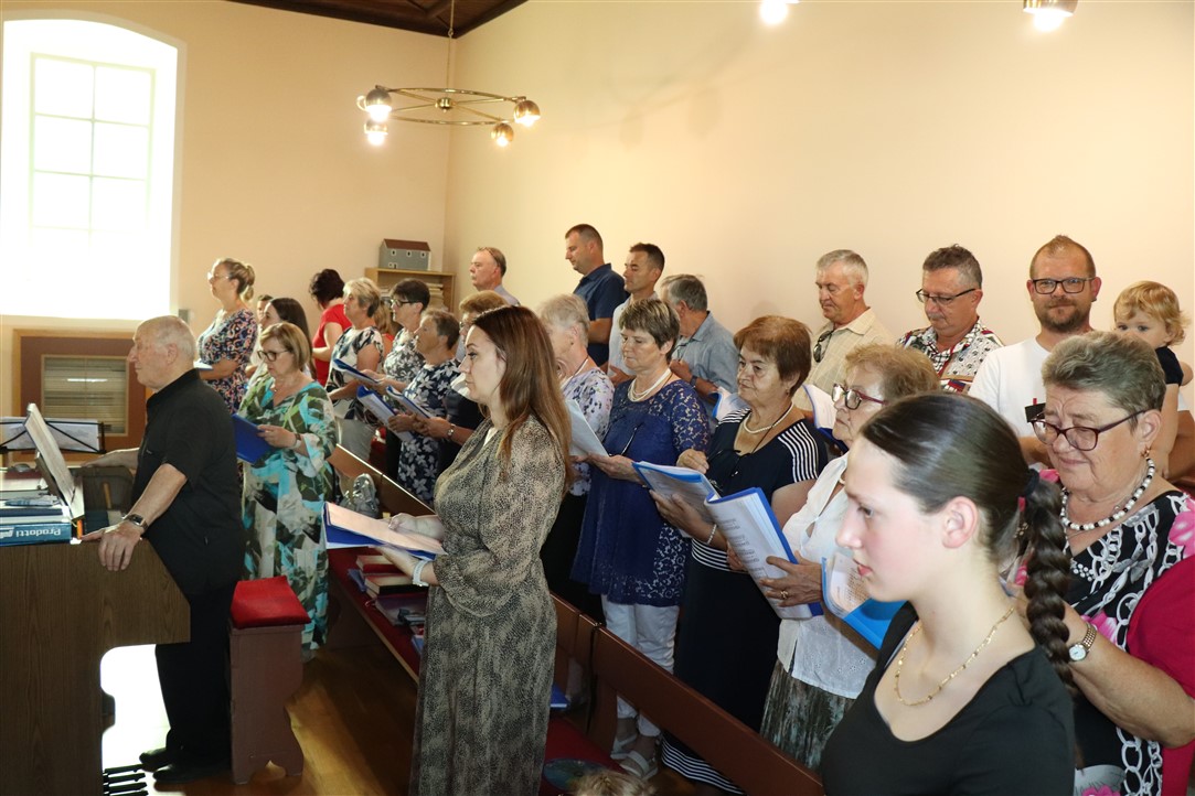Mjesni župnik, vlč. Rudi Koraca je tijekom mise na pjevalištu vodio liturgijsko pjevanje, dirigirao i instrumentalno pratio zbor iznenađujuće brojnosti za tako malu župu. Naime, župa od oko 800tinjak stanovnika ima četveroglasni zbor od oko pedeset pjevača koji pjevanje vježbaju više puta tjedno. Tijekom mise, osim župnog zbora, pojedine pjesme otpjevao je i ministrantski zbor.