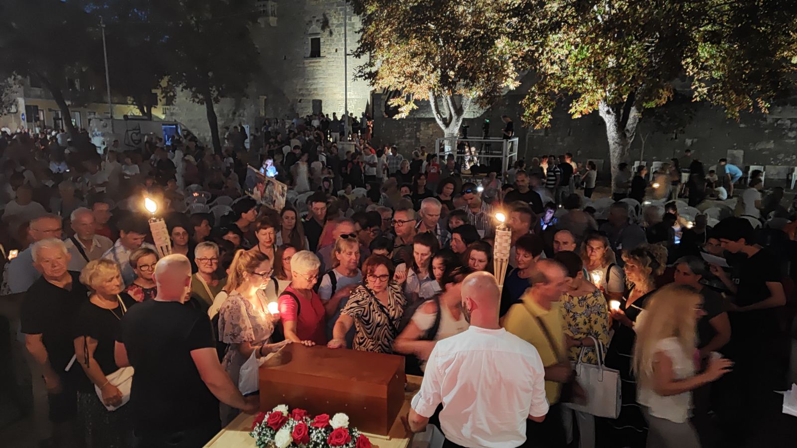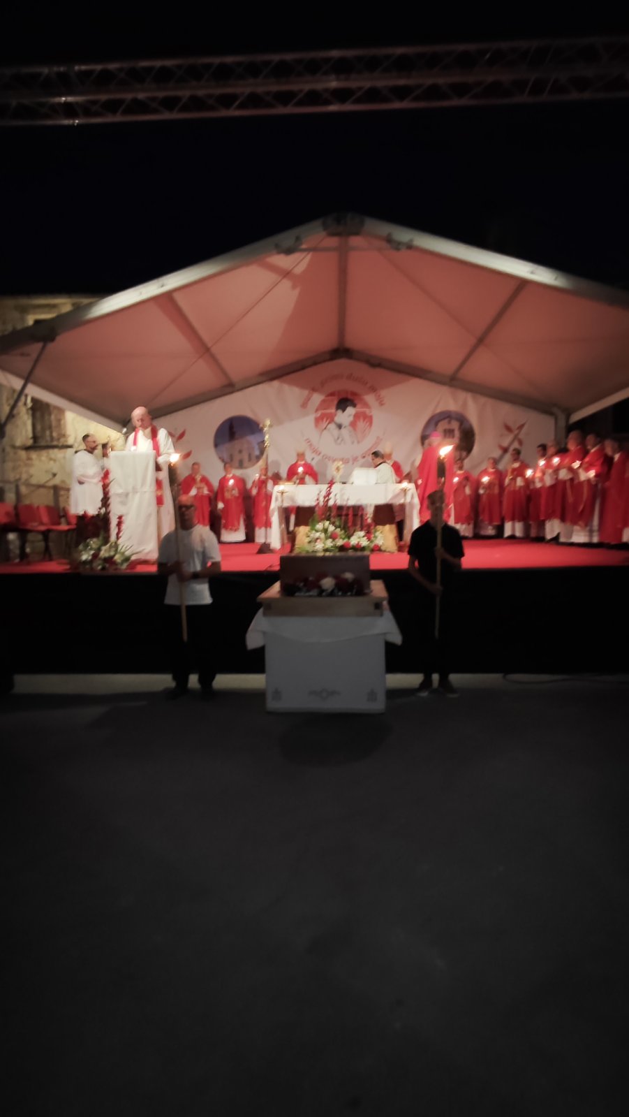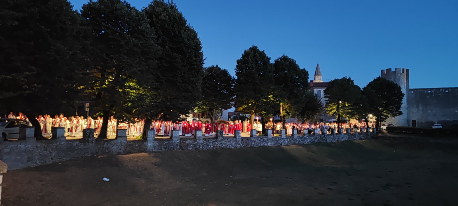 Svečanost je završena u sumrak procesijom sa svijećama oko kaštela, a nakon procesije, te nakon što je nuncij Lingua podijelio otpusni blagoslov sa svečanim relikvijarom, svi okupljeni imali su prigodu za osobno čašćenje relikvija Blaženika koje se inače čuvaju u drvenom sarkofagu u oltaru župne crkve.