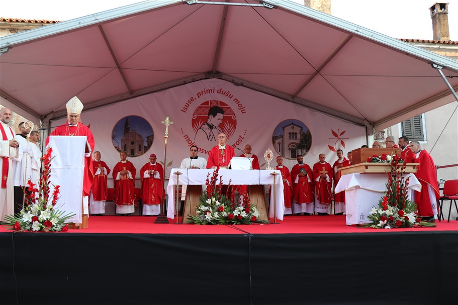 Nuncij se u prigodnoj homiliji osvrnuo na čitanja narednog dana, 21.NKG, koja govore o ljubavi i o tome kako „veće ljubavi“ nitko nema od ove: da tko život svoj položi za svoje prijatelje, kako je to doslovno učinio i naš blaženik. Pojasnio je da tu „veću ljubav“ treba promatrati u kontekstu riječi sv. Pavla „Podložni budite jedni drugima.“, te je iste razložio u kontekstu bračnih, ali i općenito međuljudskih odnosa.