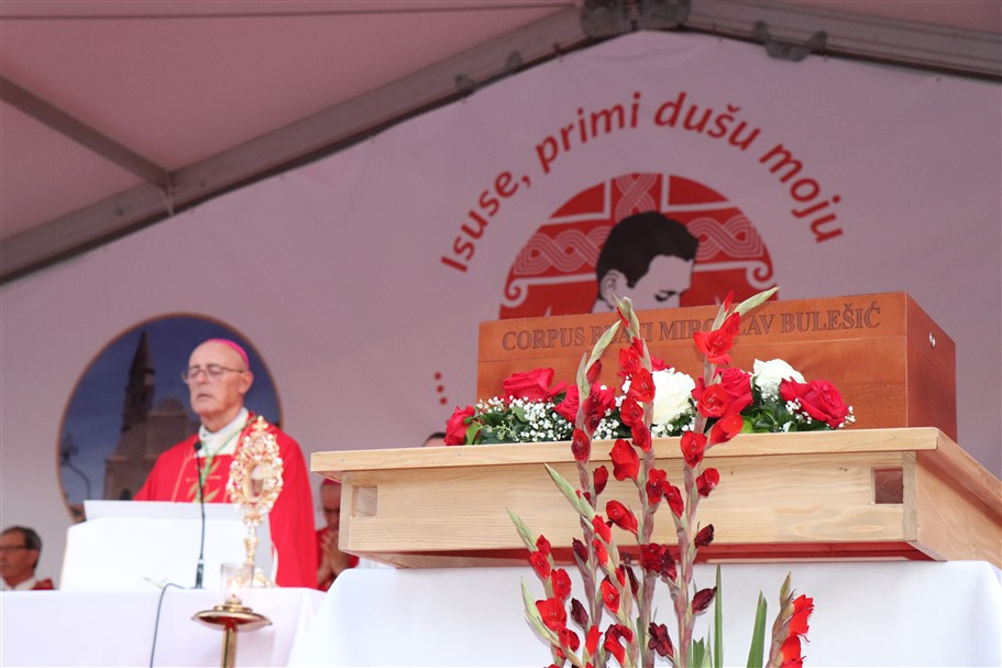 „Nije se povukao u trenucima poteškoća: dao je svoj život! U tome je postao uzor nama svećenicima, biskupima, posvećenim osobama, ali i roditeljima, mladima koji žele dobro iskoristiti svoj život. Ljubiti znači služiti. Ne pripadati više samima sebi“, rekao je mons. Lingua te je podsjetio na jedan važan detalj o Blaženiku. „Kada je osjetio da mu je život u opasnosti, nakon što je već izbjegao pokušaj ubojstva, napisao je dirljivu molitvu: Što se mene tiče, Bože moj, ako je to tvoja volja, poštedi me da budem oruđe u tvojim rukama za širenje Tvoje ljubavi i Tvoga učenja. Ako me želiš sebi, evo me, spreman sam. Dajem ti potpuno svoj život za svoje stado. S Tvojom milošću i ako me Ti učiniš dostojnim toga, ne bojim se mučeništva, već ga želim. Neka bude tvoja volja“, naglasio je nuncij Lingua u svom promišljanju o bl. Bulešiću.