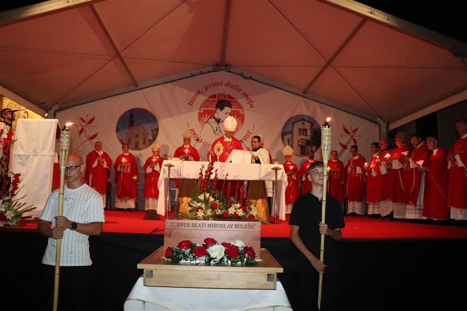 Središnje svečano misno slavlje o 77. obljetnici mučeništva bl. Miroslava Bulešića, u Svetvinčentu, njegovoj rodnoj župi, u subotu, 24. kolovoza, je predvodio apostolski nuncij u RH mons. Giorgio Lingua, uz koncelebraciju više biskupa te sedamdesetak svećenika. Koncelebrirali su: riječki nadbiskup metropolita mons. Mate Uzinić, požeški biskup mons. Ivo Martinović, porečki i pulski ordinarij mons. Ivan Štironja te biskup u miru mons. Ivan Milovan.