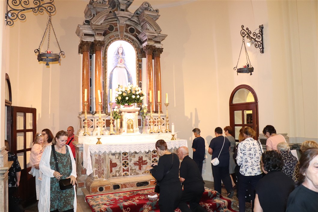 Nakon popričesne molitve vlč. Madej je u ime svih nazočnih pred kipom u svetištu izmolio Molitvu Majci Božjoj od Milosrđa, a nakon otpusnog blagoslova svi okupljeni imali su prigodu za ophod oko oltara Majke Božje. Mnoštvo ih se zaustavilo u dužoj molitvi, kako su to činile nebrojene generacije vjernika u toj crkvici koja se nalazi u samom srcu grada, ili, koja na neki način i je – samo „srce“ grada.