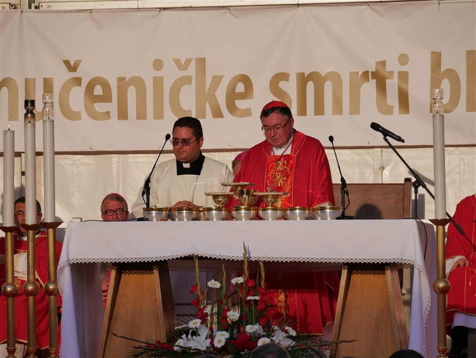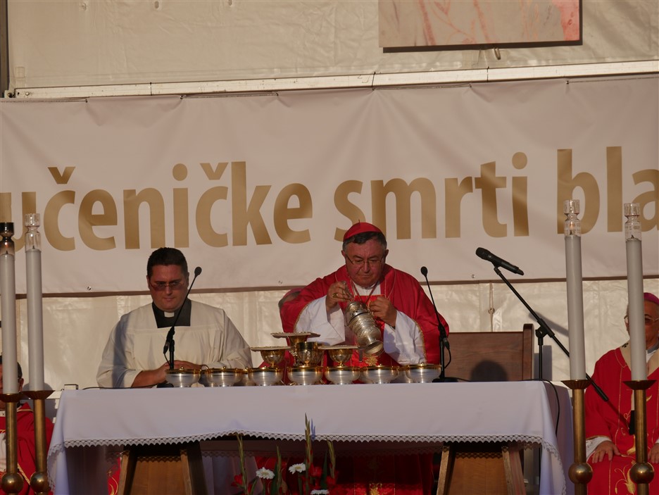 Blaženi Miroslav daruje svoj život za svoje stado, ta me rečenica posebno dirnula u njegovom životopisu, istaknuo je kardinal, te nadodao, to je pravi pastir. Ne znajući što ga čeka već je tada bio spreman dati svoj život za svoje stado. To je prema Isusovoj riječi „tko hoće ići za mnom neka uzme svoj križ i neka me slijedi, i njega će Otac nebeski proslaviti“. Napose svećenike treba resiti ta oduševljenost, revnost, istaknuo je propovjednik te citirao papu Franju „pravi svećenik je zanesen Kristom“. Spomenuo je svećenike koji su dali svoje živote zbog vjernosti Kristu u Drugom svjetskom ratu. Posebno je istaknuo progone u poratnom vremenu, ako se je tko, primjerice, usudio štogod dobro reći o Bl. Alojziju Stepincu. I u Domovinskom ratu, divio sam se mnogim svećenicima koji su bili hrabri ostati uz svoje stado, rekoa je kardinal Puljić. Naveo je primjer vlč. Ivana Borika koji je unatoč biskupovu prijedlogu da pođe, ostao uz svoje stado i umro mučeničkom smrću. Prisjetio se i svoga školskog kolege vlč. Filipa Lukende u Banjaluci kojeg su spalili u župnoj kući. Dakle i danas imamo heroje vjere, naglasio je kardinal. Podsjetio je na poznati događaj kada je nadbiskup Josip Stadler došao u Rim tražiti relikvije od pape, a papa mu je odgovorio „Gdje god potražiš u svojoj zemlji naći ćeš kosti mučenika, jer toliko ih je pobijeno za vrijeme Osmanskog carstva.“ Za te mučenike nisu pokrenuti procesi, i teško ih je pokrenuti, no ti grobovi i danas okupljaju vjernike, i narod ih proglašava blaženima iako Crkva šuti, rekoa je propovjednik. Naš narod kao da ne zna cijeniti tu vjeru za koju su mnogi umirali. Znate, ne umire se za bilo što, umire se za ono što je sveto, za što se isplati život položiti, podsjetio je kardinal. I branitelji su položili život za ono što su smatrali svetim, sveto ognjište, sveta rodna gruda, sveta Domovina, a na poseban način treba shvatiti svetost vjere, za tu se vjeru gine, „za Krst časni i slobodu zlatnu“, citirao je propovjednik. Blaženi Miroslav je divan primjer koji nam ne da mira u savjesti, jer i mi smo generacija koja mora unijeti vjeru u ovo javno mnijenje koje je bolesno, u to javno mnijenje moramo unijeti svoje uvjerenje, život vjere. Tako ćemo graditi zdravo, ispravno društvo. Potrebno je naučiti razlučiti Istinu od laži. Obilazeći patnički narod u ratnim vremenima, i gledajući bolne rane psihičke i fizičke, nemam riječi da ljudski tješim, ali jednostavno kažem „Božja je zadnja.“ „Mogu ljudi kako hoće, ali neće dokle hoće“, podsjetio je kardinal, te spomenuo zgodu kada je jednom diplomati, koji je insinuirao da će se Hrvati morati ili seliti ili asimilirati s nadolazećim narodima, rekao kako su „hrvati preživjeli i Osmansko carstvo, i komunizam, a i vas ćemo, ako Bog da.“, što je izazvalo spontani pljesak vjernika na svetvinčentskom trgu. Važno je steći to vjerničko uvjerenje, taj duh i srce koje nas nosi, da se ne bojimo žrtve. Danas sve manje odgajamo za žrtvu. Naveo je čuđenje jedne mlade djevojke zbog činjenice kako su nekadašnje generacije pjevale i veselile se u velikoj neimaštini, no, tko se nije naučio žrtvovati, taj se ne zna radovati, jer žrtvovanje je svjedočanstvo ljubavi i darivanja, naglasio je propovjednik. U tome je bila hrabrost bl. Miroslava, nije se bojao žrtvovati za svoje stado, za svoj narod. Ima onih koji ginu sa stisnutom šakom za osvetu, ali bl. Miroslav je rekao „Moja osveta je oprost“, to je hrabrost vjere. Snaga je to vjere i praštanje koje pobjeđuje zlobu i mržnju, nema goreg otrova u srcu od mržnje, koja nagriza srce iznutra, i prevažno je biti slobodan. Bl. Miroslav je bio hrabar i bio je u duši slobodan, za Božju se skroz opredijelio. Slaviti blaženog Miroslava znači dozvoliti da nas zahvati oduševljenje za Isusa Krista, i to ugraditi u svoje uvjerenje. Nije dovoljno samo reći „ja vjerujem, ja molim“, najvažnije je moći reći „ja svjedočim“, to svjedočanstvo unosim u društvo, u život, u ovu svoju Domovinu, u svoju grudu, koju nazivamo svetom, i ona to i je jer je posvećena tolikom mučeničkom krvlju, tolikim suzama, znojem. Zato ne smijemo izgubiti taj osjećaj- gdje smo nikli. Trebamo je znati voljeti ne samo kada je treba čuvati i braniti kada je neprijatelj napadne, nego sada kad je treba izgrađivati, kada u nju treba unijeti duha, duše, da ne vlada bezdušnost nego duša vjernika koja odgaja mladost. Potrebno je biti svjesni važnosti Domovine, i Isus je imao svoju domovinu, umro je pod natpisom Nazarećanin. Iz te domovine donio je spasenje svima, i mi ljubeći svoju Domovinu nikoga ne isključujemo, nikog ne mrzimo, nego želimo posvjedočiti one vrijednosti koje čine čovjeka dostojanstvenim, da on svoje dostojanstvo posvjedoči i živi i prenosi na buduća pokoljenja. Kada večeras dođete kući, i nađete trenutak tišine, pomolite se za tu radosnu vjeru, da se ne bojite života, da nas ne zatruje ovaj zloduh, koji nam krade nadu. Čovjek koji s Kristom živi on nikada ne može izgubiti, on je uvijek dobitnik. Kada molite, utvrđujte svoju nadu, svoje pouzdanje. Kardinal se podsjetio vremena poraća nakon Drugog svjetskog rata, u neimaštini, kada su ljudi govorili „dat će Bog, providit će Bog“. Želim da ne nasjedate ovima koji brane zločin i zlobu, tko brani zločin, dionik je zločina. Zločin treba osuditi. Trebamo biti ljudi Istine, povjerenja i pouzdanja u Boga, ponesimo to u svoju svagdašnjicu. Neka svatko na nama može pročitati „on zna zašto živi“, jer tko vjeruje u Boga zna zašto živi. Želim da ta radosna vjera prožme vaša srca, vaše obitelji i vaš kraj, da budete dostojni potomci divnih predaka koji su za vjeru umirali i vjerni ostali, zaključio je kardinal, a trgom se ponovno prolomio spontani gromoglasni pljesak.