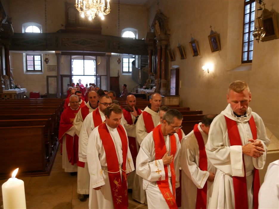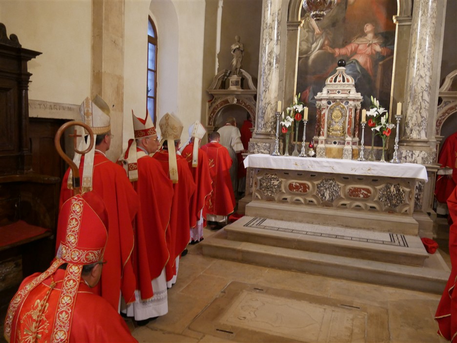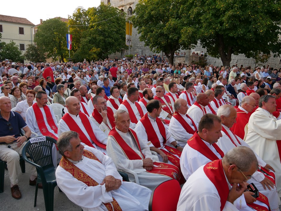 Koncelebrirali su riječki nadbiskup i metropolita mons. Ivan Devčić, gospićko-senjski biskup mons. Zdenko Križić, krčki biskup u miru mons. Valter Župan, porečki i pulski biskup u miru mons. Ivan Milovan, porečki i pulski ordinarij mons. dr. Dražen Kutleša te oko stotinjak svećenika iz Porečke i Pulske i drugih biskupija. Prije početka misnoga slavlja nadahnuti uvodni govor o Blaženiku izrekao je vlč. dr. Josip Grbac.