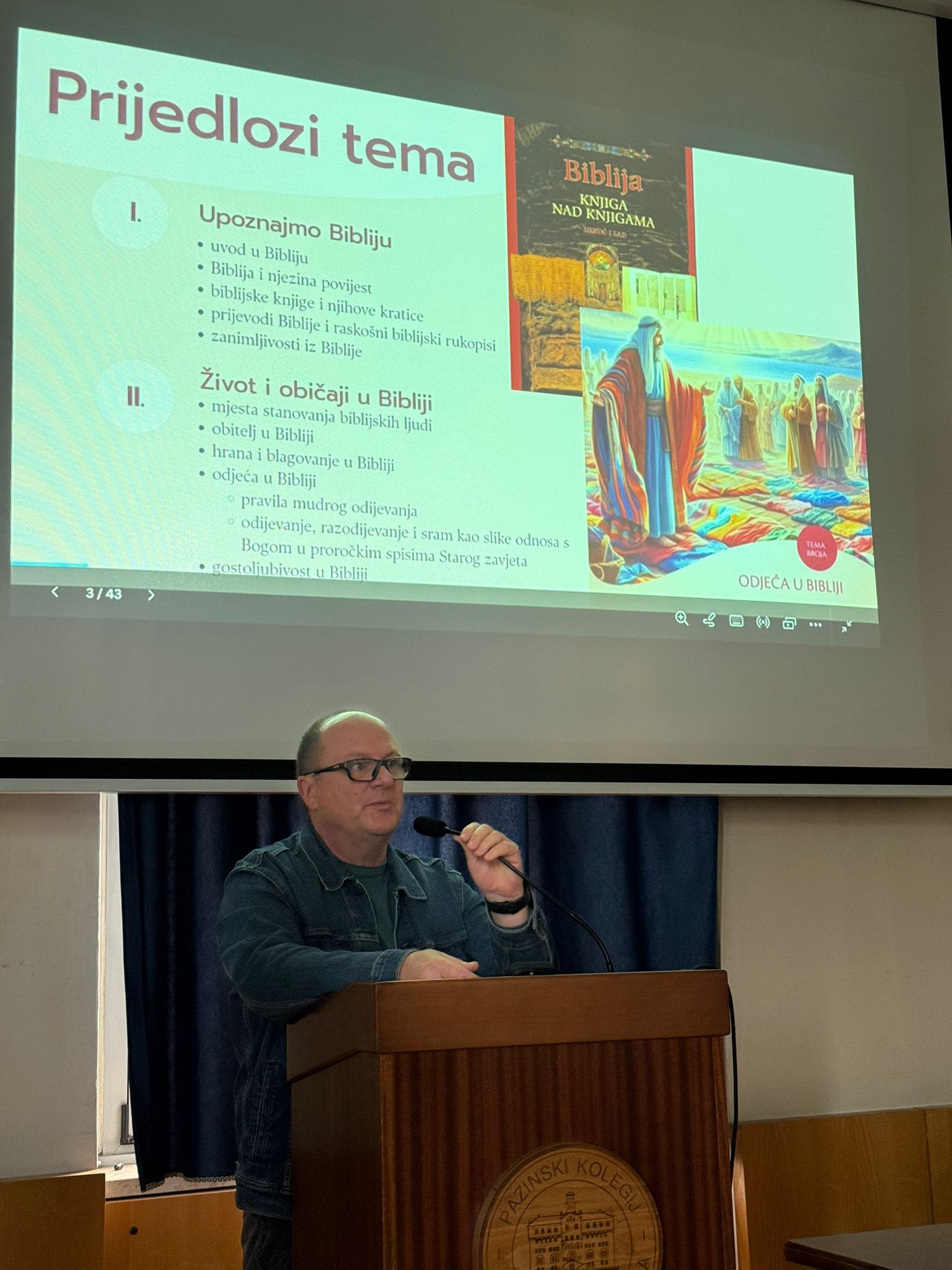 Građa za natjecanje iz vjeronauka Žene u Bibliji – Vjeronaučnu olimpijadu učenika osnovnih i srednjih škola za 2025./2026. školsku godinu bila je poticaj vjeroučiteljici Neli Peteh koja je pripremila prezentaciju o biblijskom temama koje se mogu obrađivati na izvannastavnoj školskoj aktivnosti Biblijska grupa. Prezentaciju je predstavio vjeroučitelj Slavko Vukmanov Šimokov.