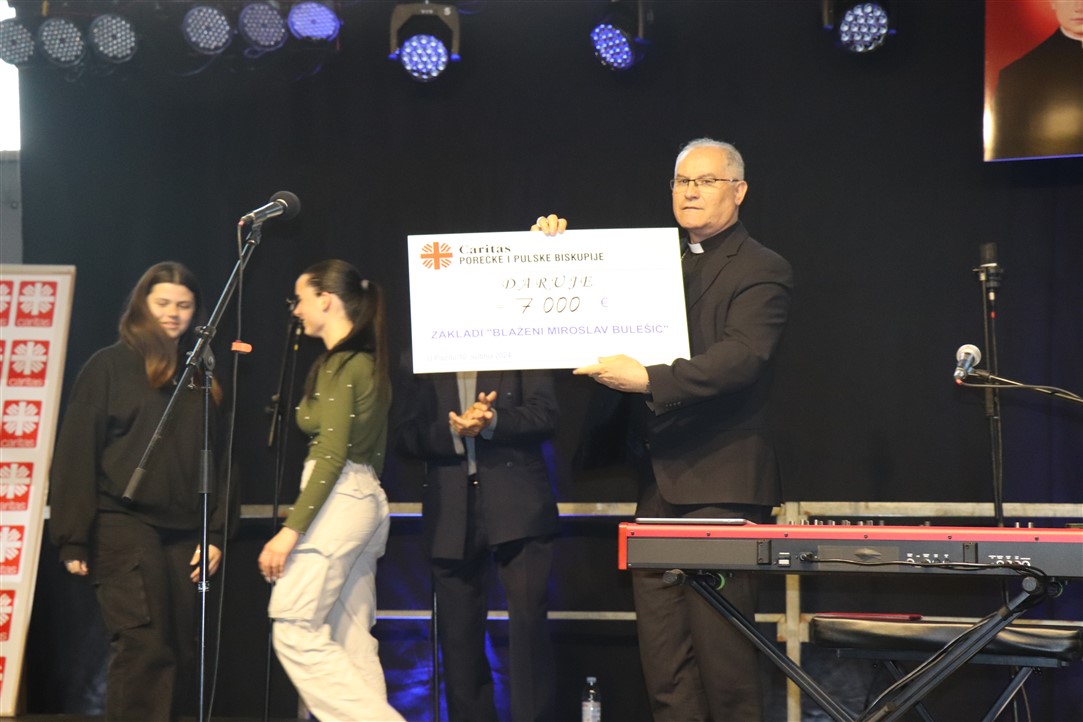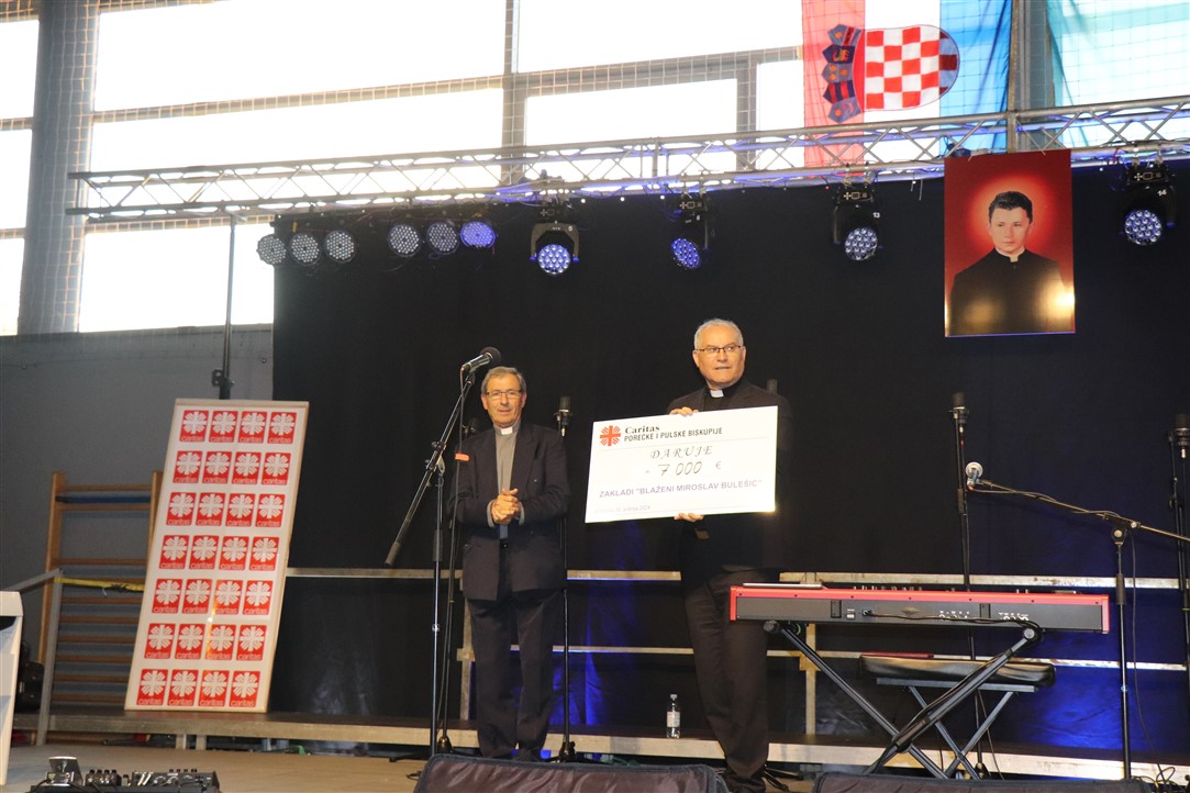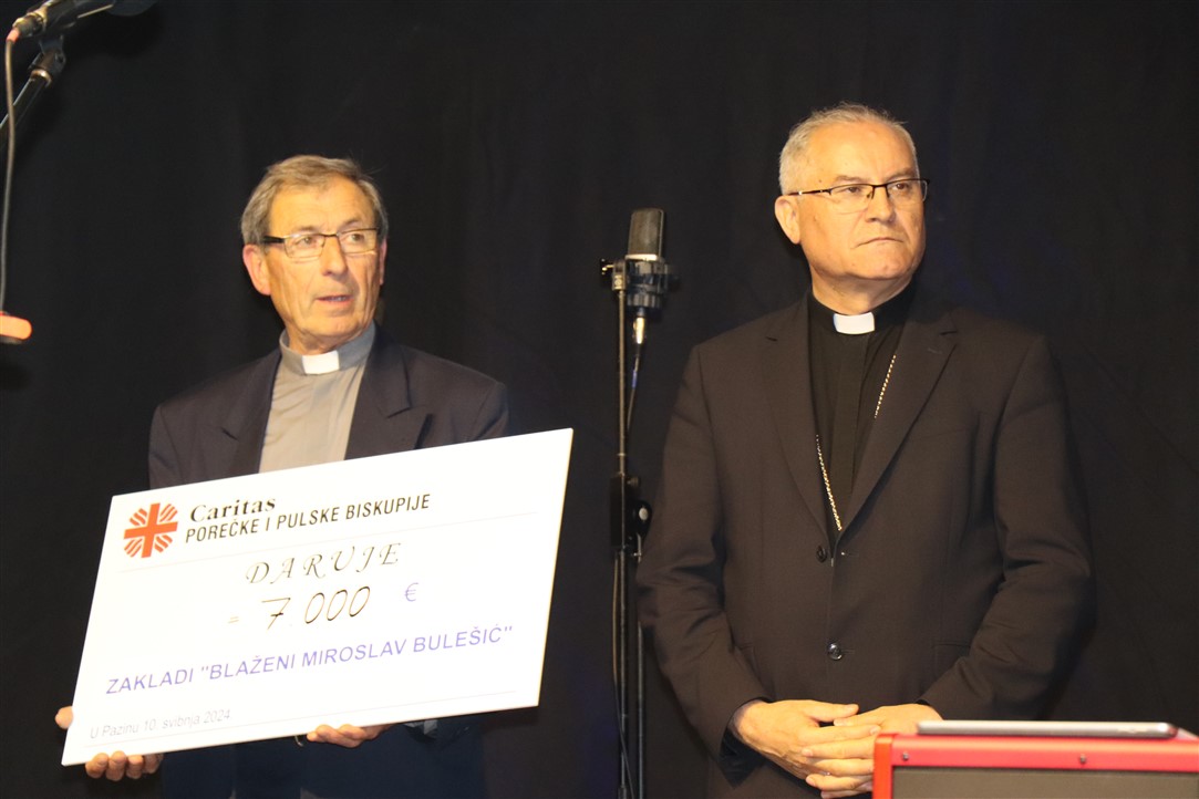Biskup Štironja je u ime Porečke i Pulske biskupije ravnatelju preč. Zecu za Biskupijsku zakladu uručio ček na iznos od 7000 eura, a, prema riječima organizatora, još je toliko sakupljeno od prodaje ulaznica.