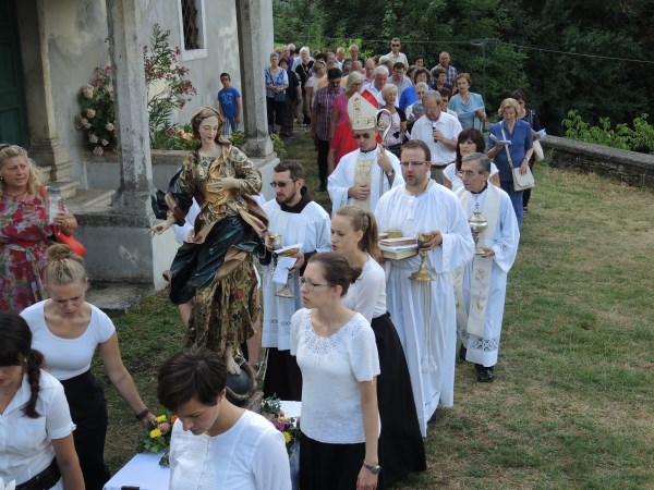 Procesija je započela u samostanskoj crkvi molitvom pred kipom Gospe od Anđela, koju su zatim djevojke na čelu procesije pronijele samostanskim perivojem do proplanka na suprotnoj strani samostanskog posjeda, gdje je održana sveta misa. Biskup je u prigodnoj homiliji istaknuo dva temeljna koncepta nedjeljnog evanđelja, o tome kako i zašto ljudi u svetopisamskim prikazima traže i slijede Isusa, motive koje i svatko od nas može pronaći u svome životu. Što ti ljudi koji su, slušali smo u prošlotjednom evanđelju, bili nahranjeni s pet kruhova i dvije ribe, što oni žele od Isusa? Motiv traženja je duhovna glad no često ljudi traže na pogrešan način.