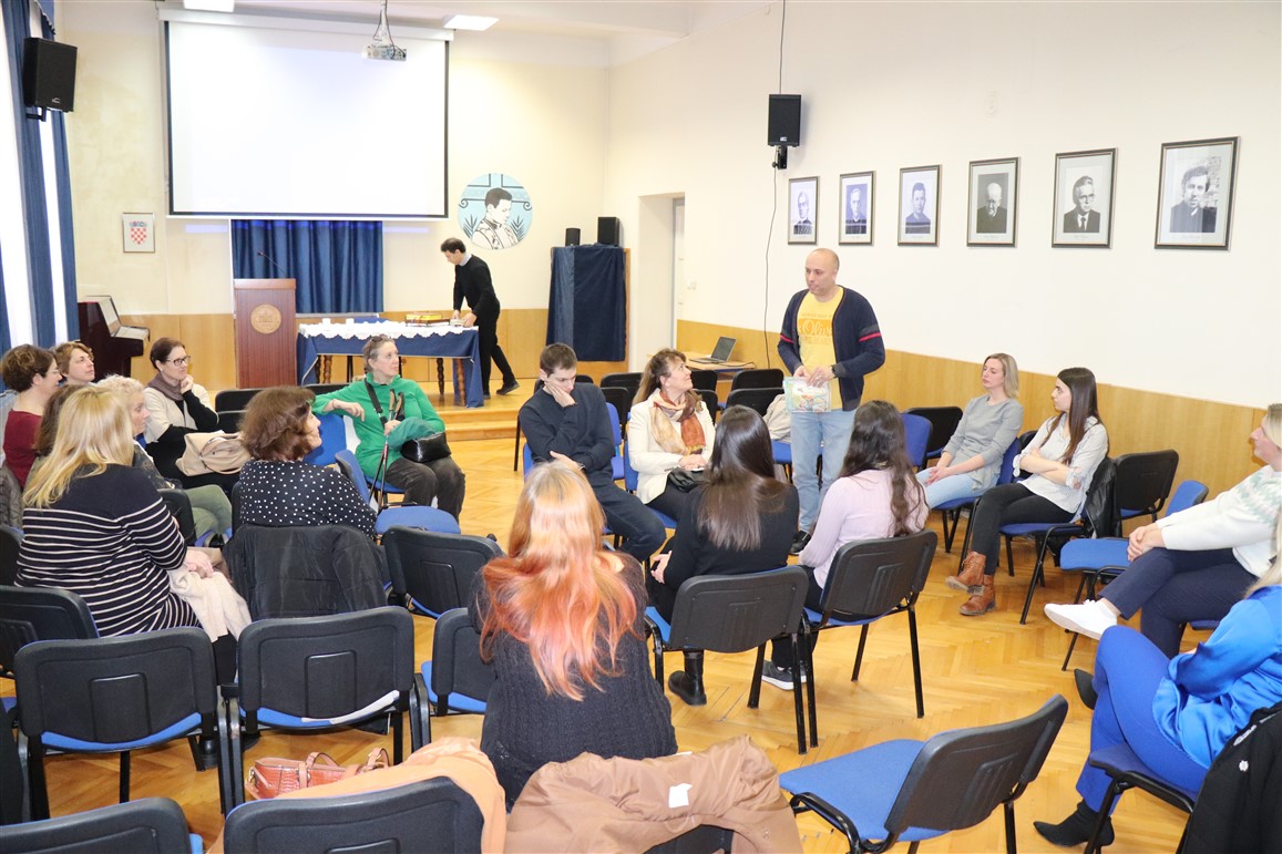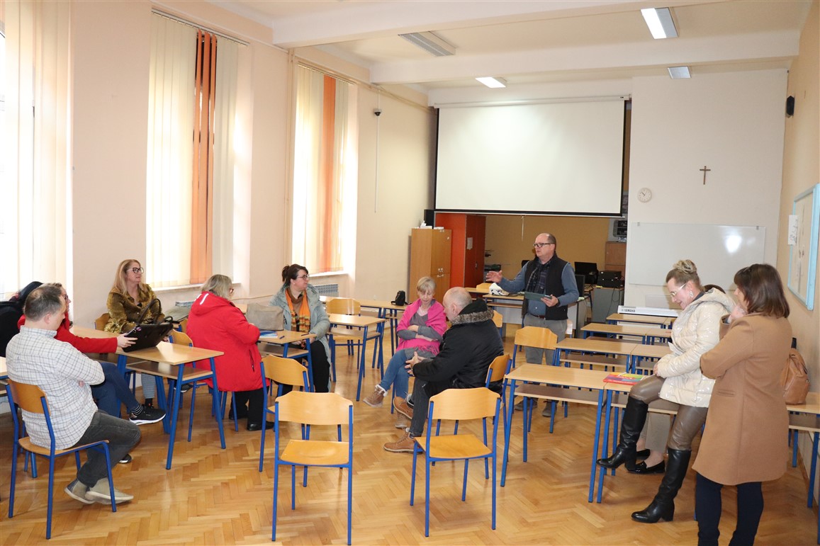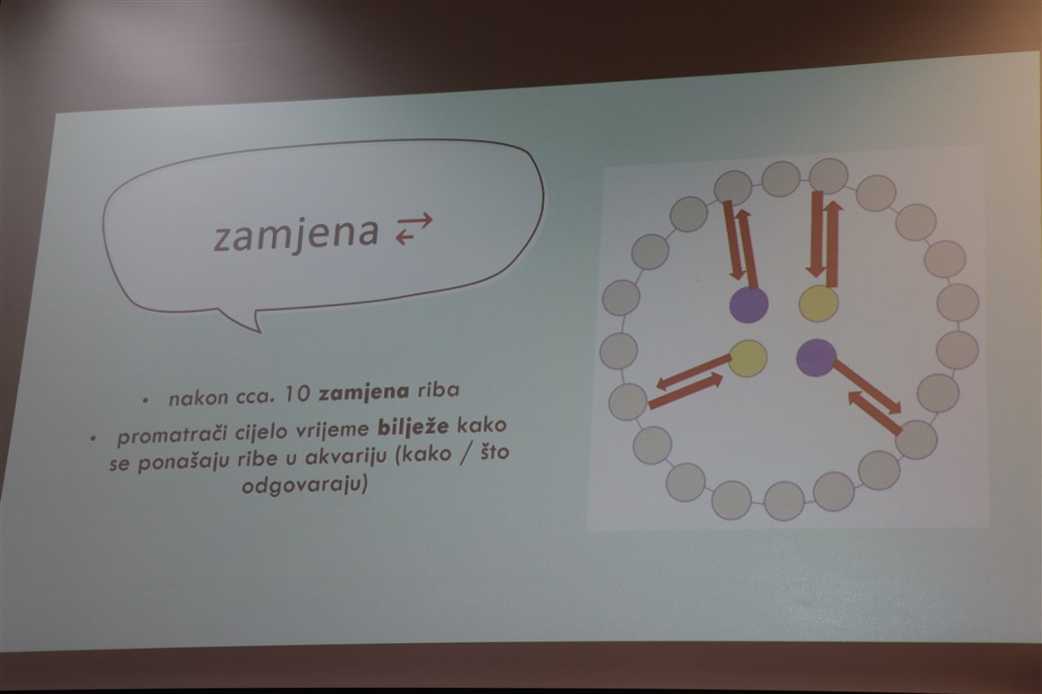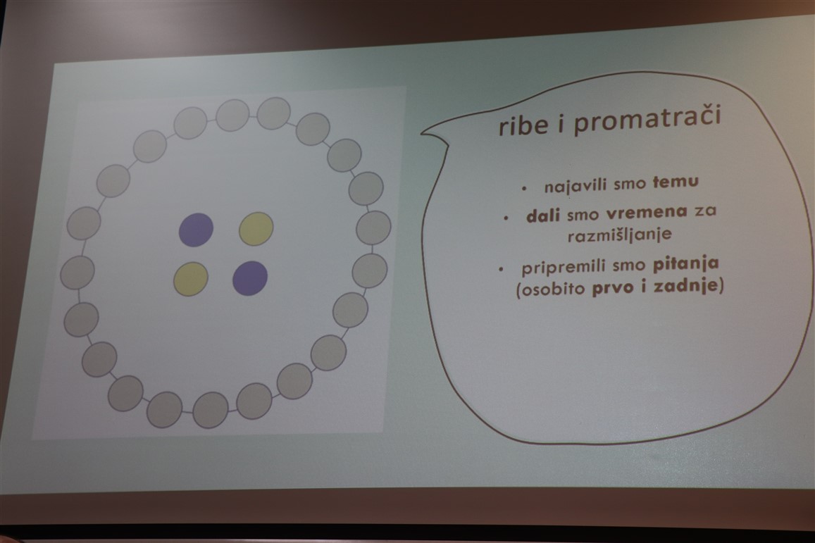 U nastavku su stručni dio za vjeroučitelje osnovnih i srednjih škola održali Slavko Vukmanov Šimokov i Domagoj Matković. Kraćim prigodnim izlaganjem uz power point prezentaciju te potom i radionicama obradili su metodologiju rada i pravilan pristup dinamičnom interaktivnom modelu rada u učionici, konkretno odvijanje diskusije po tzv. sistemu riba u akvariju i promatrača. U tom se modelu konfrontacije pozornost učenika održava, uz ostalo, promjenom uloge, od protagonista do aktivnog promatrača, te konstantnim monitoringom osobnog doživljaja vlastitog sudjelovanja u diskusiji, a sve uz aktivni nadzor tutora, u ovom slučaju vjeroučitelja.