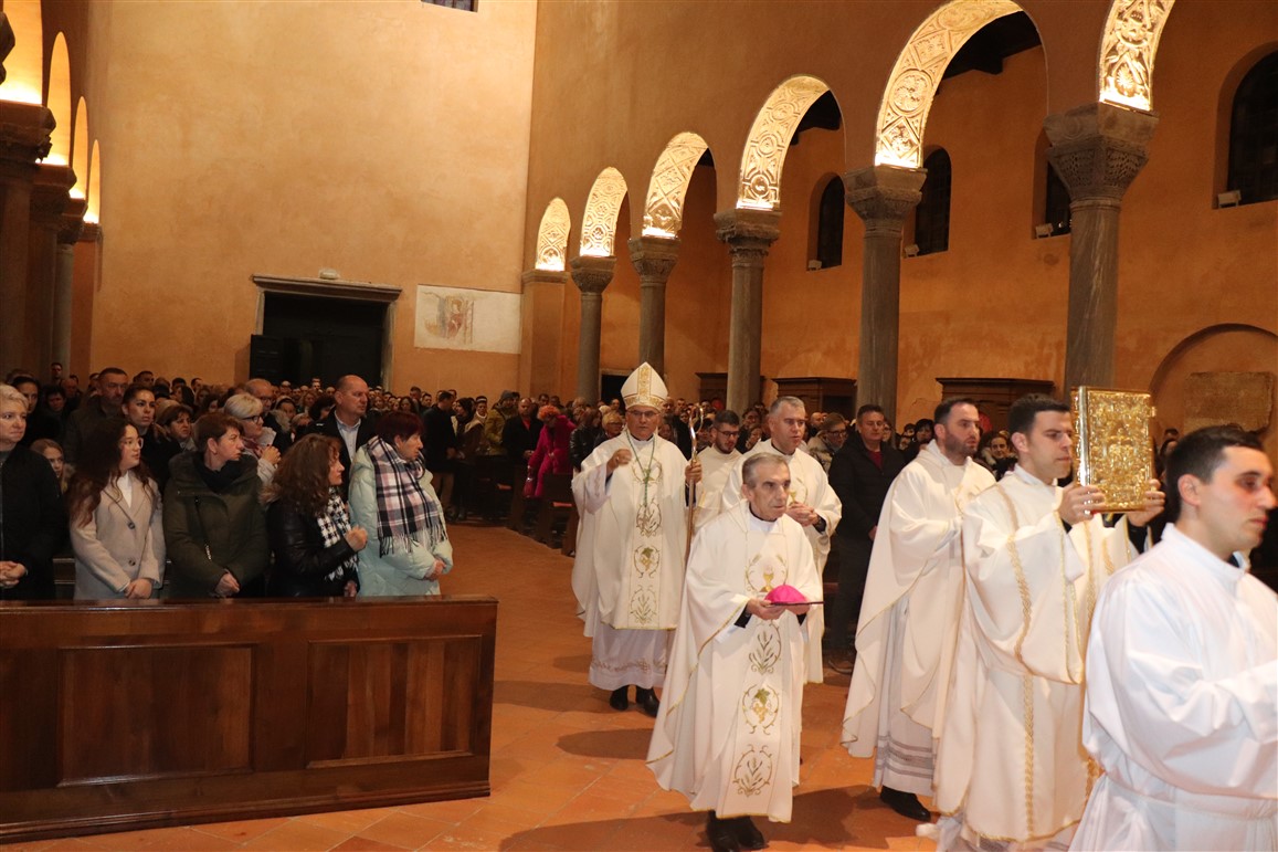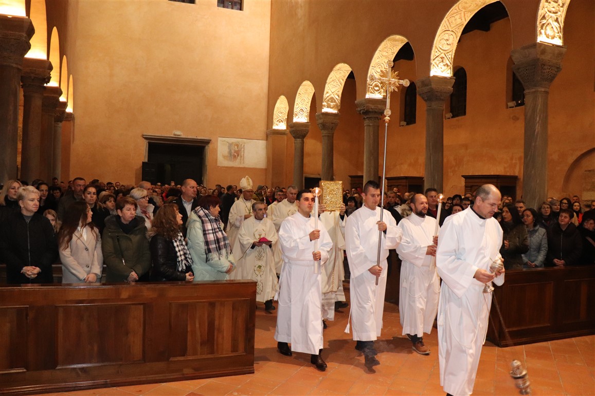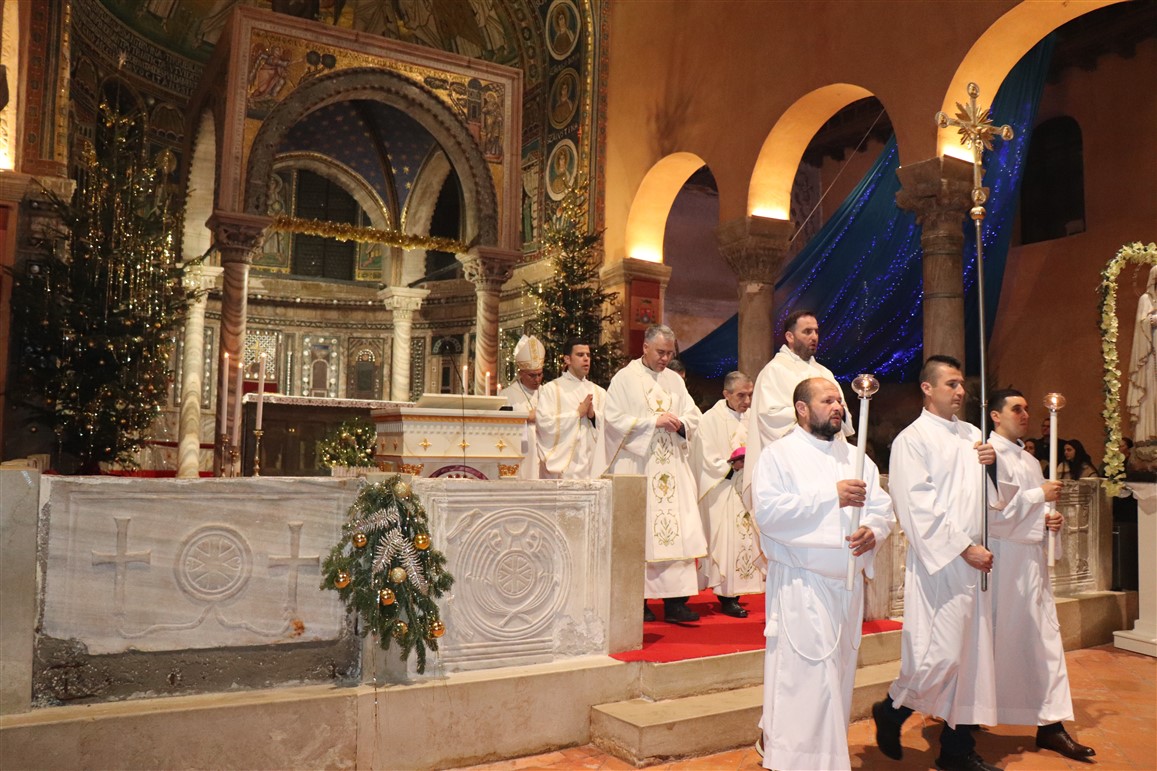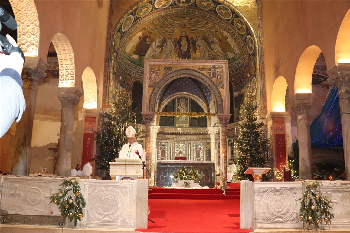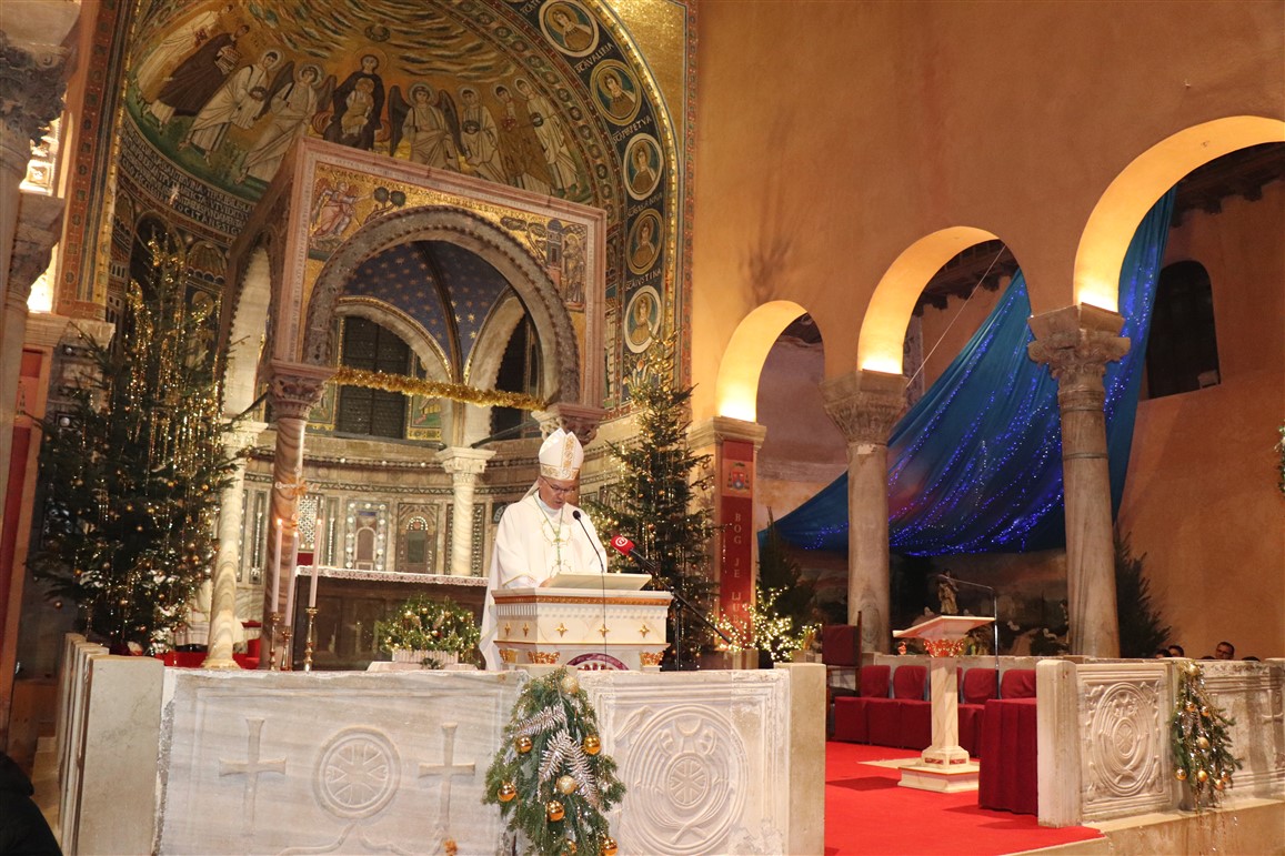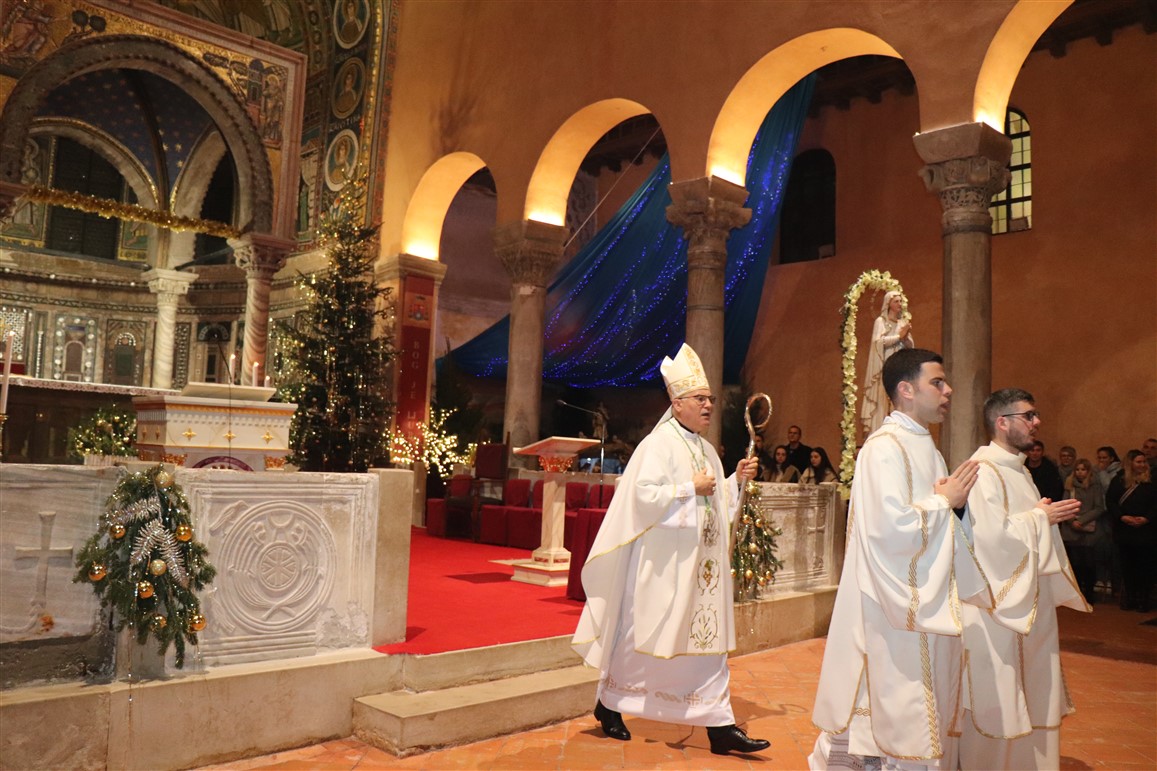 Misu polnoćku u porečkoj katedrali ove je godine, o Božiću 2023., predvodio porečki i pulski biskup mons. Ivan Štironja. Koncelebrirali su kancelar biskupije mons. Sergije Jelenić, katedralni župnik vlč. Mladen Pranjić, te župni vikar katedralne župe vlč. Boško Čatlak. Evanđelje je navijestio nedavno zaređeni đakon Tobija Matijević koji provodi vrijeme praktikuma u porečkoj župi.