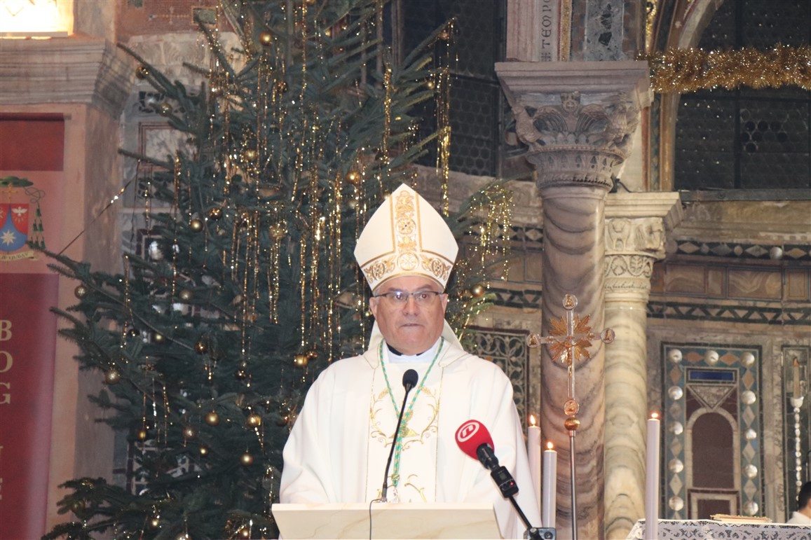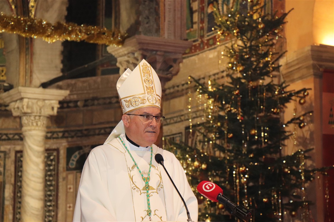 Biskup je vrlo snažno naglasio važnost čuvanja izvornosti Božića i božićne poruke važnost čuvanja izvornosti Božića i božićne poruke, koja nije tek neka čarolija, ili priča nego istina koja osmišljava naše živote osobito životne poteškoće. Stoga je naglasio: Božić je, dakle, svetkovina silaska Božje ljubavi među nas ljude. Božja prisutnost u svijetu je nadahnuće i izvor svih božićnih pjesama, običaja, folklora, gastro ponuda, darivanja… Sve to može pratiti svetkovanje Božića i biti u službi ali nikako ne smije postati cilj i smisao našega slavlja, ne može i ne smije potisnuti činjenicu da se Bog darovao čovjeku, i da je upravo to razlog naše radosti koju mi stariji moramo prenijeti u originalu na buduća pokoljenja.