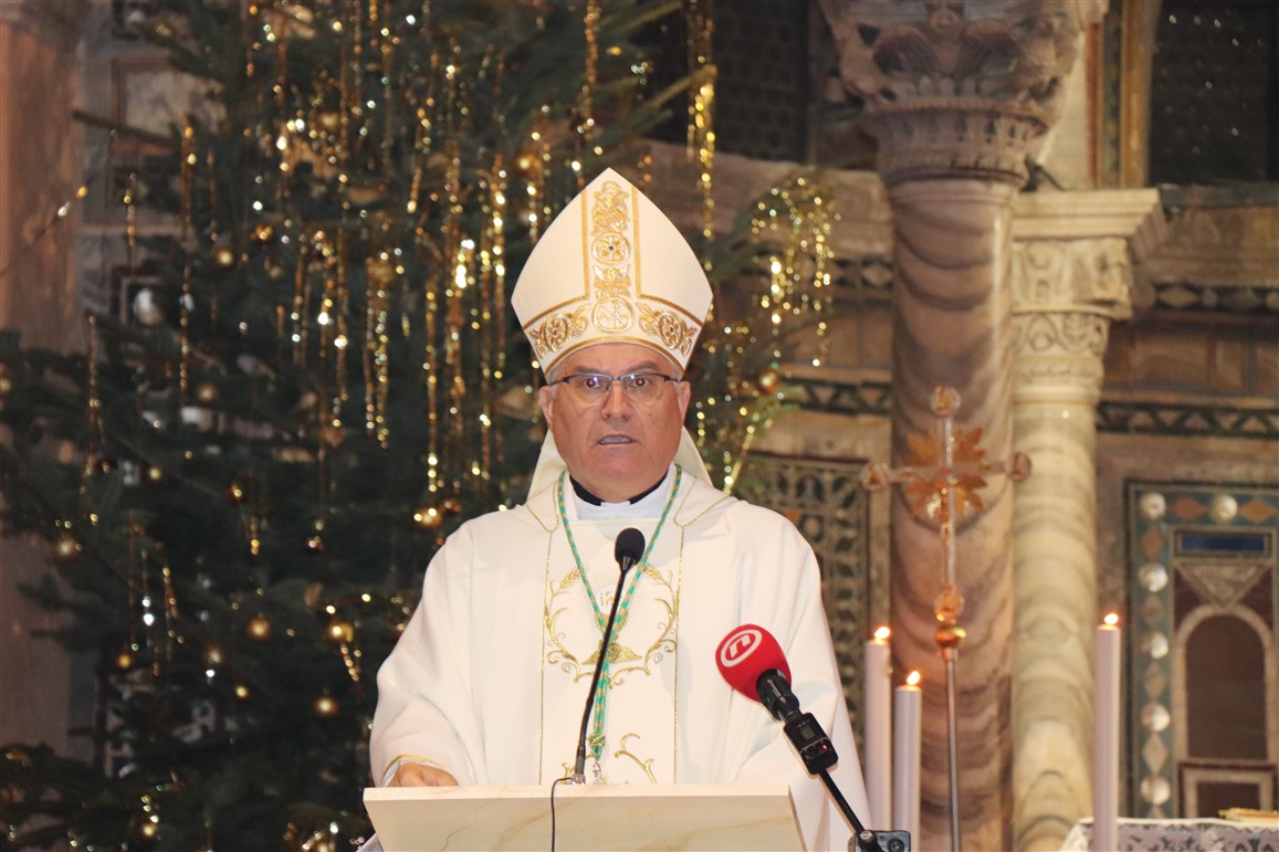 Radujući se velikom broju mladeži, mladih obitelji i djece, biskup je zaželio svima da osjete vrijednost tišine i bogatstva koje se krije u tišini Božićne noći. Stoga je biskup Ivan žarko zavapio: „Isuse, mira nam daj. Mir nam je potrebniji više nego gladnomu hrana i žednomu voda. Mira nam daj i ljubavi svoje, Isuse. Imamo mi u svijetu svega, često i previše. No, potrebni smo te posebne Božje ljubavi i toga Tvoga mira kojega svijet ne može dati. Nitko osim tebe, Isuse. Svijet nudi ljubav i prijateljstvo koje se zapali, bljesne i nestane. Sve su to prolazni ljudski osjećaji koji se brže ugase nego što se zapale. Čovjekovo srce čezne za čvrstom i neprolaznom vezom ljubavi i prijateljstva, čiji plamen nitko i ništa ne može ugasiti… Samo utemeljena ljubav na Božjoj ljubavi, jača je od smrti. To je ljubav koja se gradi na stijeni vjere“.