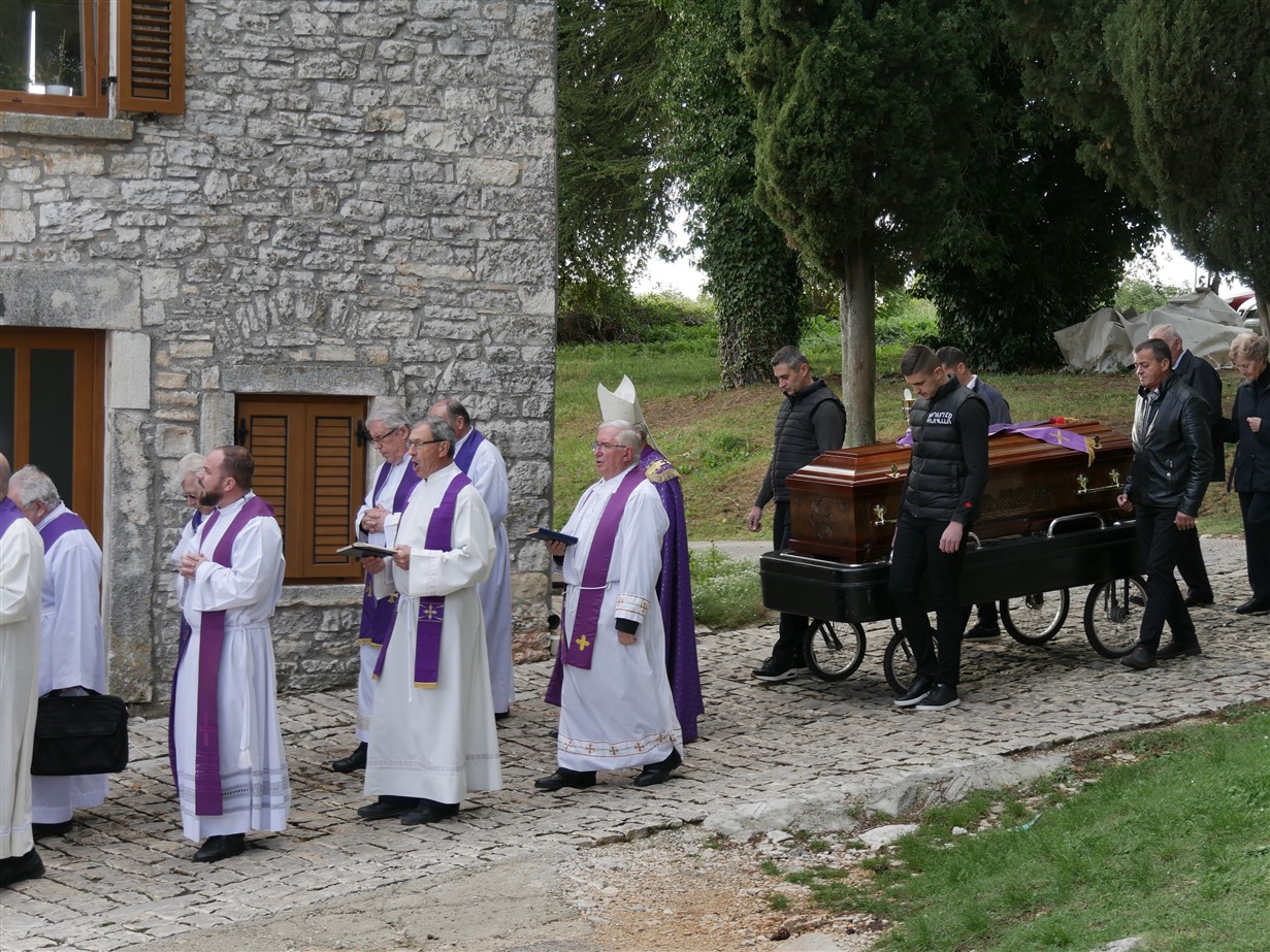Na pogrebnoj misi u žminjskoj župnoj crkvi sv. Mihovila arkanđela, uz biskupa je koncelebriralo dvadesetak svećenika, u asistenciji su bili bogoslovi iz pulskog Biksupijskog misijskog sjemeništa “Redemptoris Mater”, a, uz rodbinu pokojnika, misi je nazočilo mnogo pokojnikovih prijatelja te župljana župa u kojima je služio.